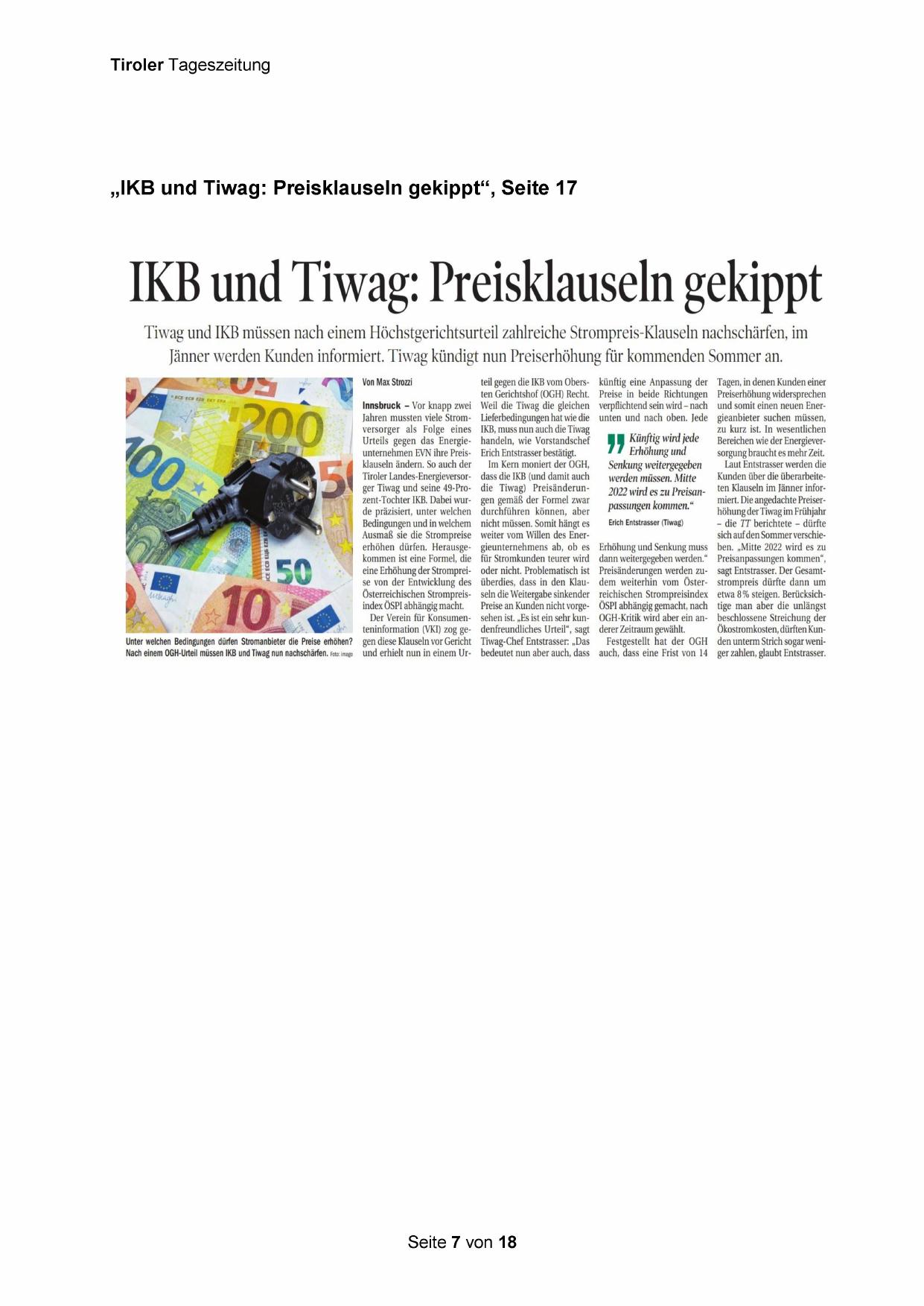 „IKB und Tiwag: Preisklauseln gekippt“, Seite 17