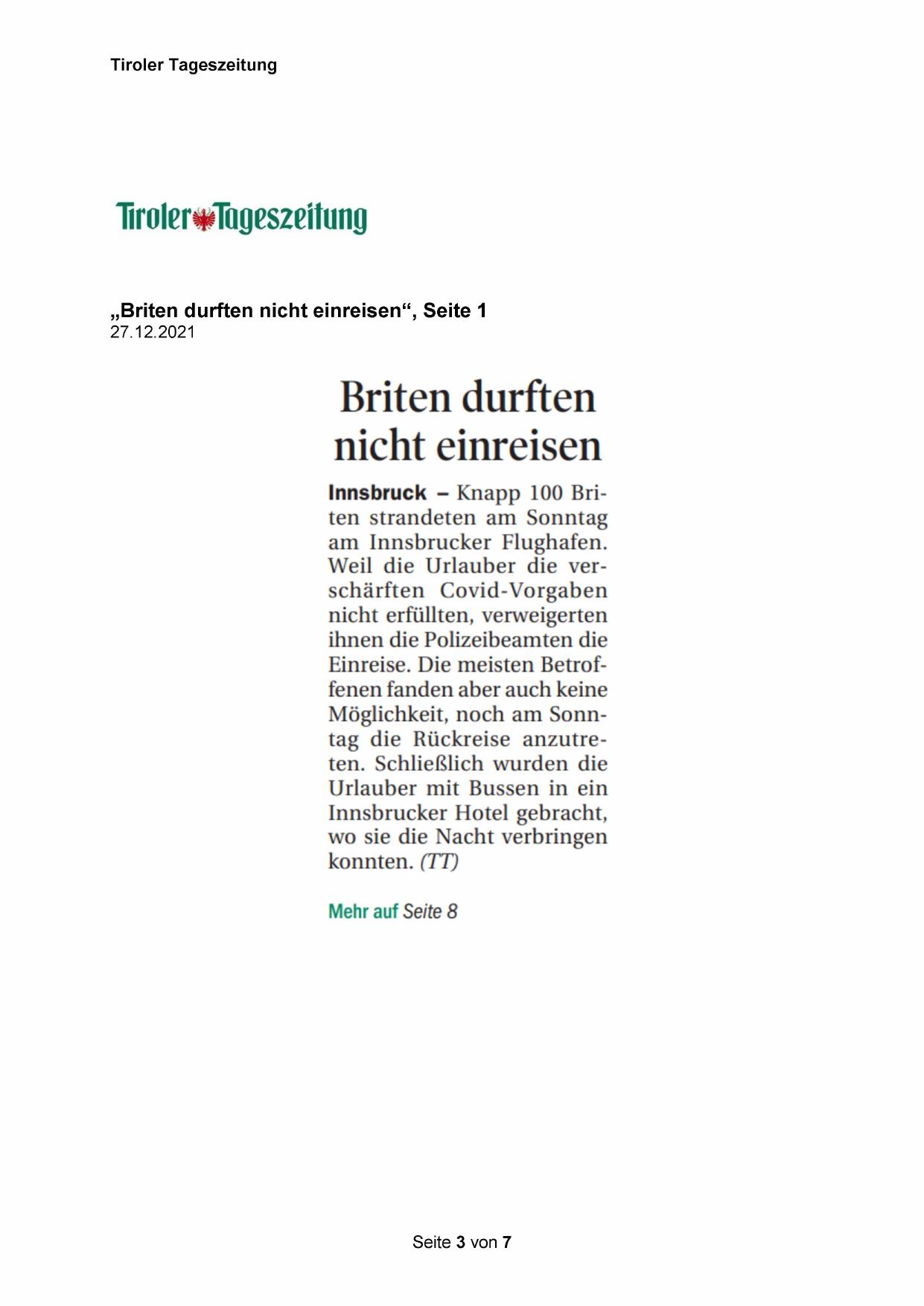 Innsbruck - Knapp 100 Briten strandeten am Sonntag