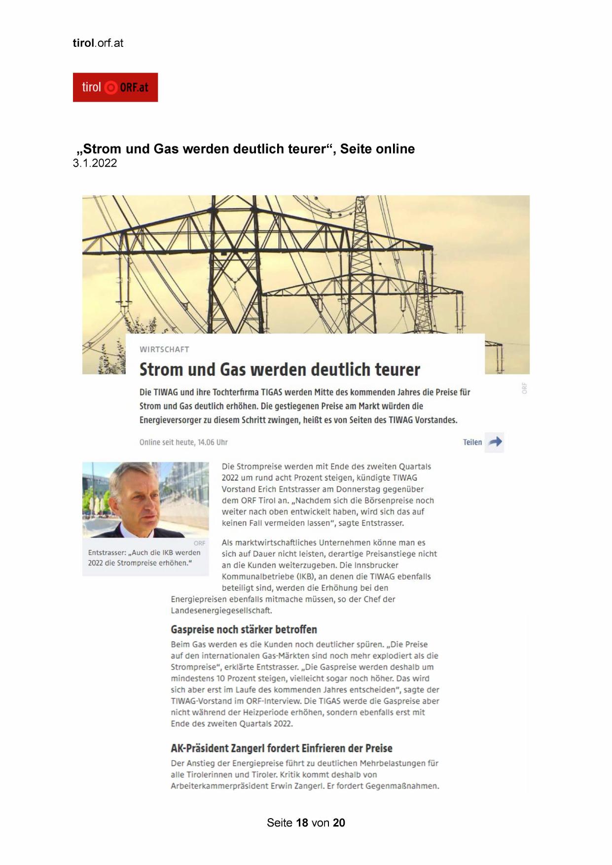 2022 die Strompreise erhöhen.“ an die Kunden weiterzugeben. Die Innsbrucker