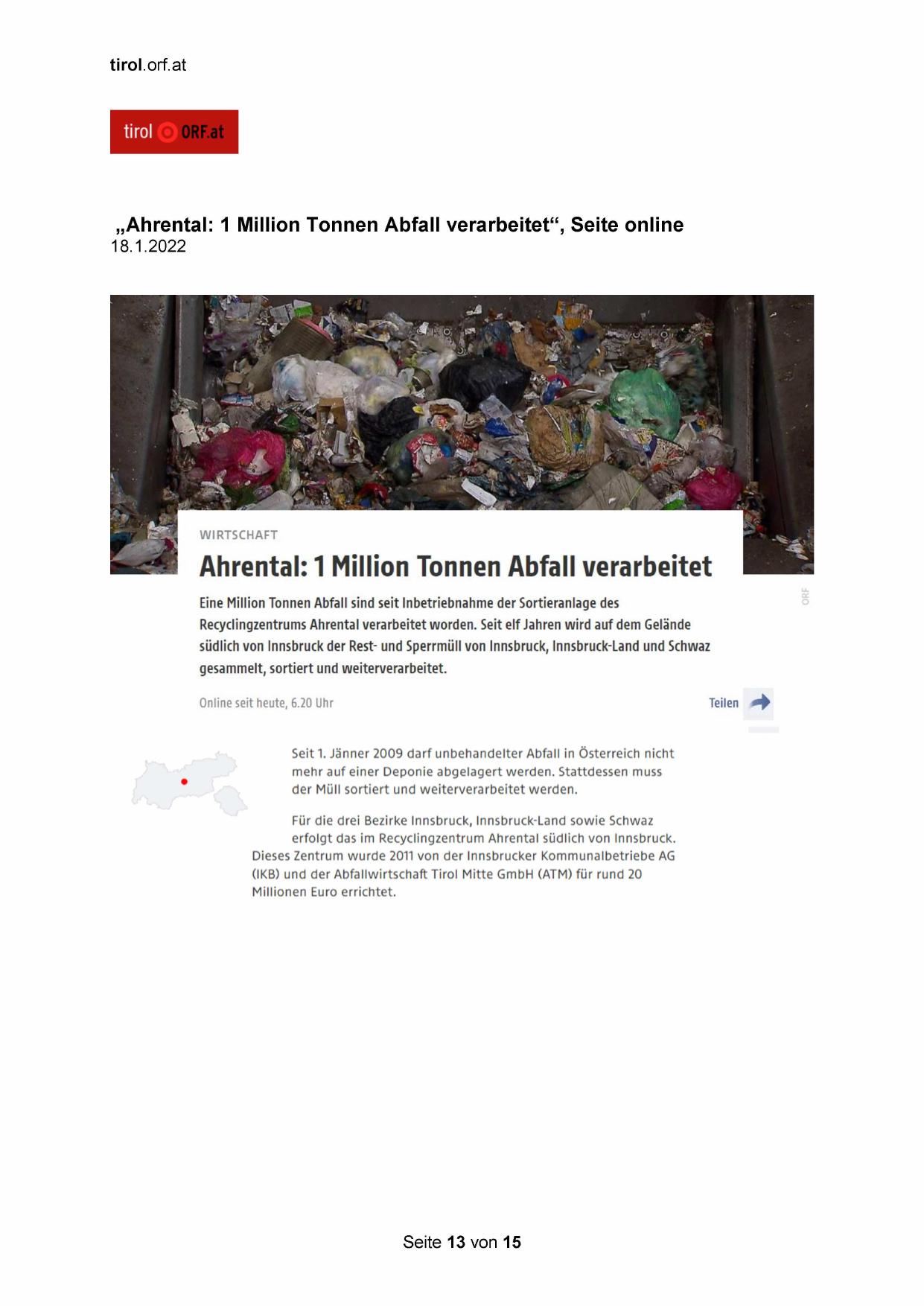 „Ahrental: 1 Million Tonnen Abfall verarbeitet‘“, Seite online