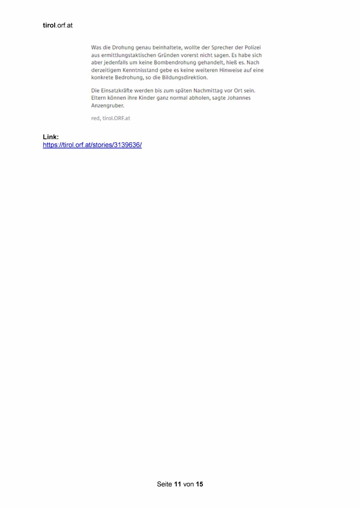Was die Drohung genau beinhaltete, wollte der Sprecher der Polizei