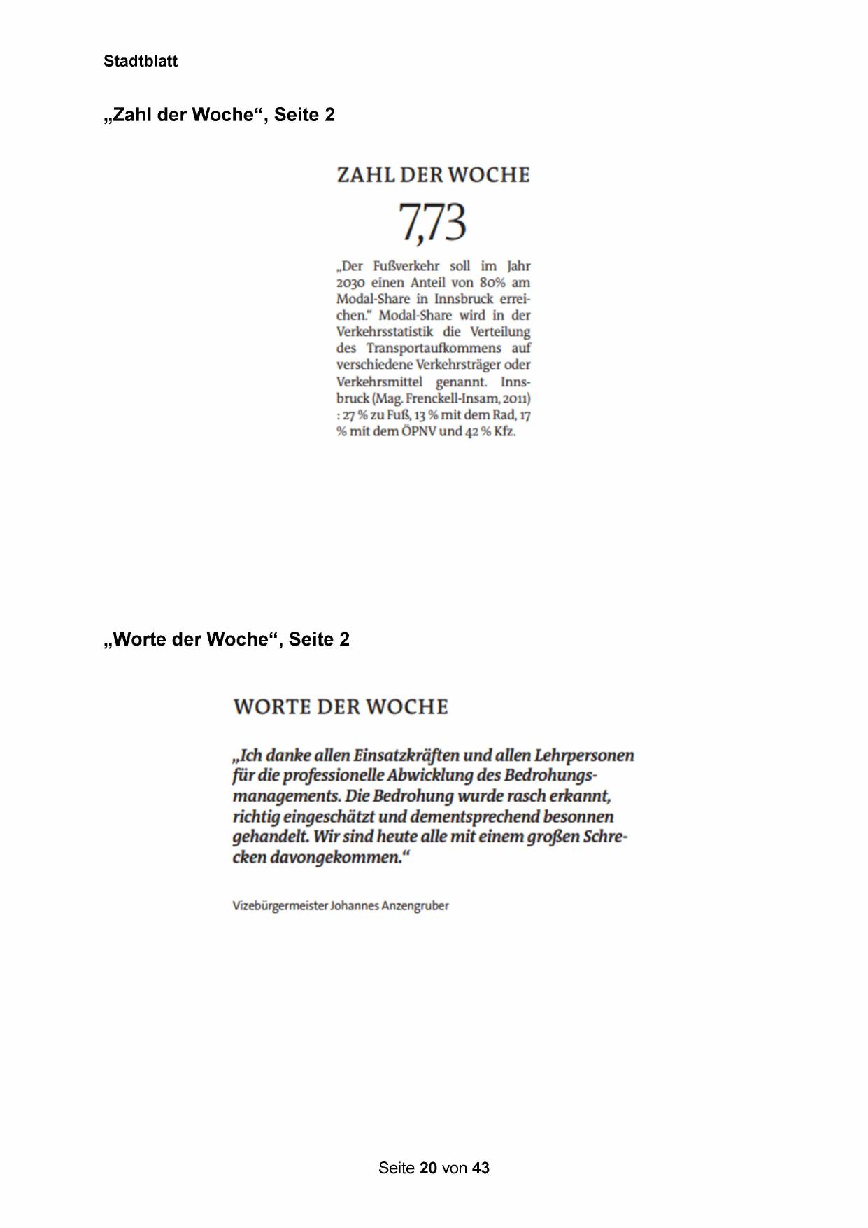 Verkehrsmittel genannt. Innsbruck (Mag. Frenckell-Insam, 2011)