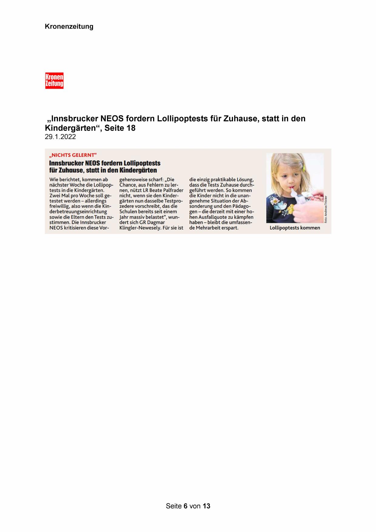 sowie die Eltern den Tests zu- Jahr massiv belastet“, wunstimmen. Die Innsbrucker dert sich GR Dagmar