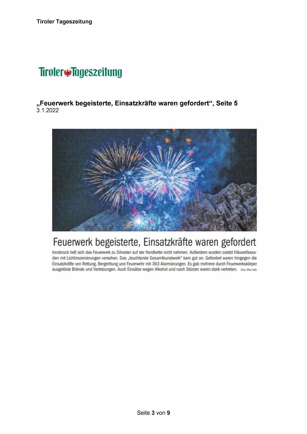 Innsbruck ließ sich das Feuerwerk zu Silvester auf der Nordkette nicht nehmen. Außerdem wurden zuletzt Häuserfassaden mit Lichtinszenierungen versehen. Das „leuchtende Gesamtkunstwerk“ kam gut an. Gefordert waren hingegen die