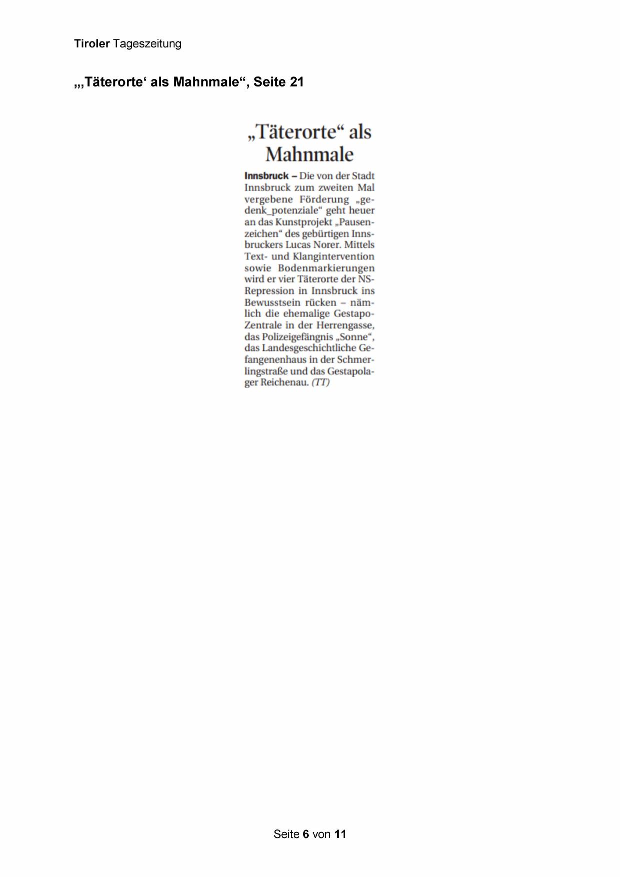 an das Kunstprojekt „Pausenzeichen“ des gebürtigen Innsbruckers Lucas Norer. Mittels