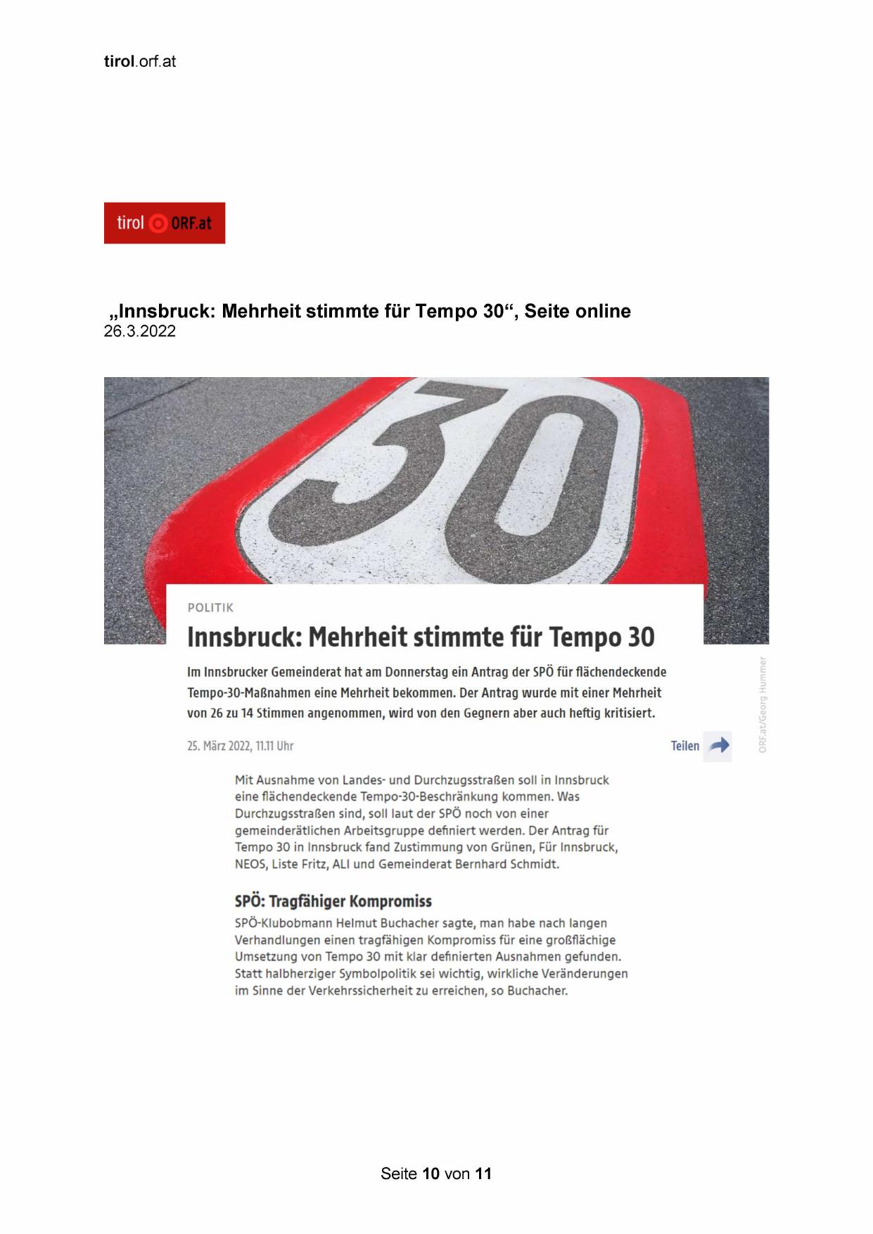 „Innsbruck: Mehrheit stimmte für Tempo 30“, Seite online