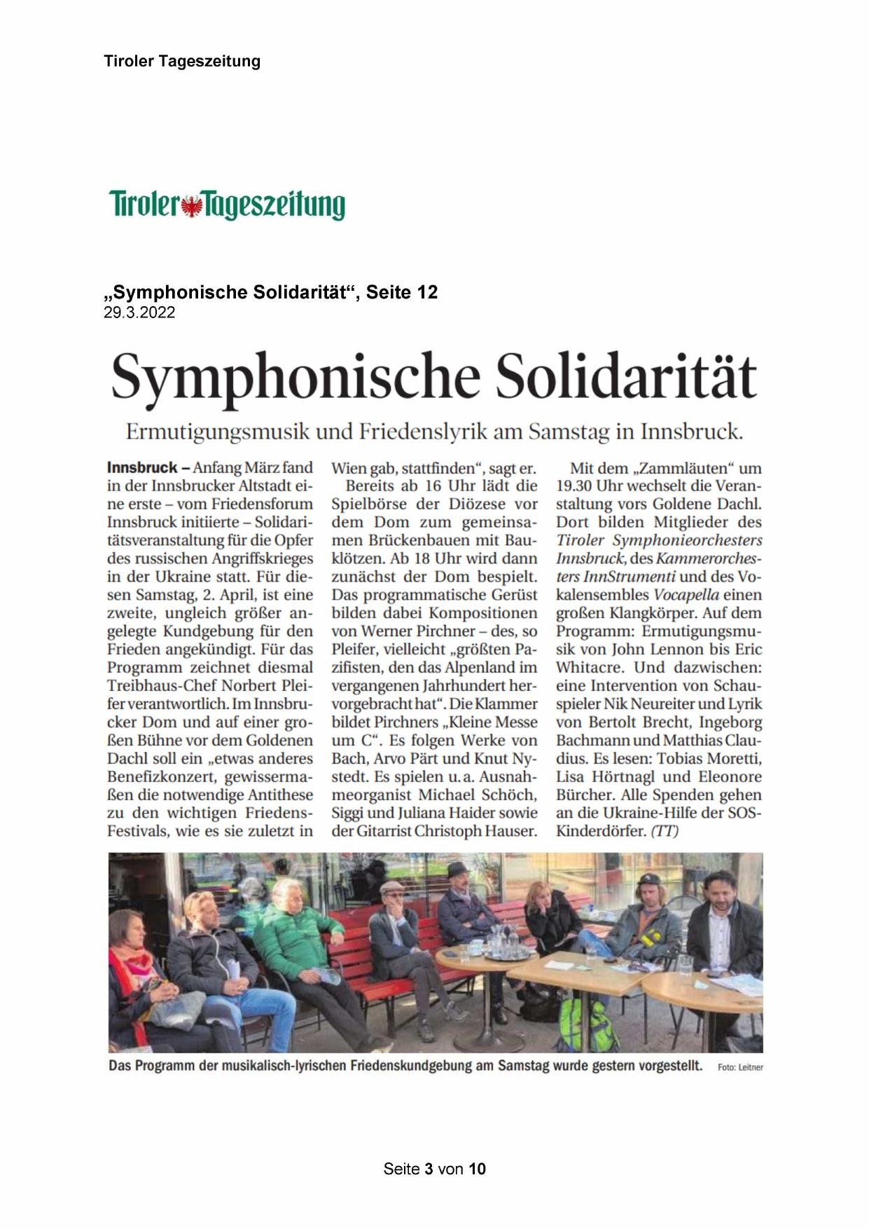 Ermutigungsmusik und Friedenslyrik am Samstag in Innsbruck.
