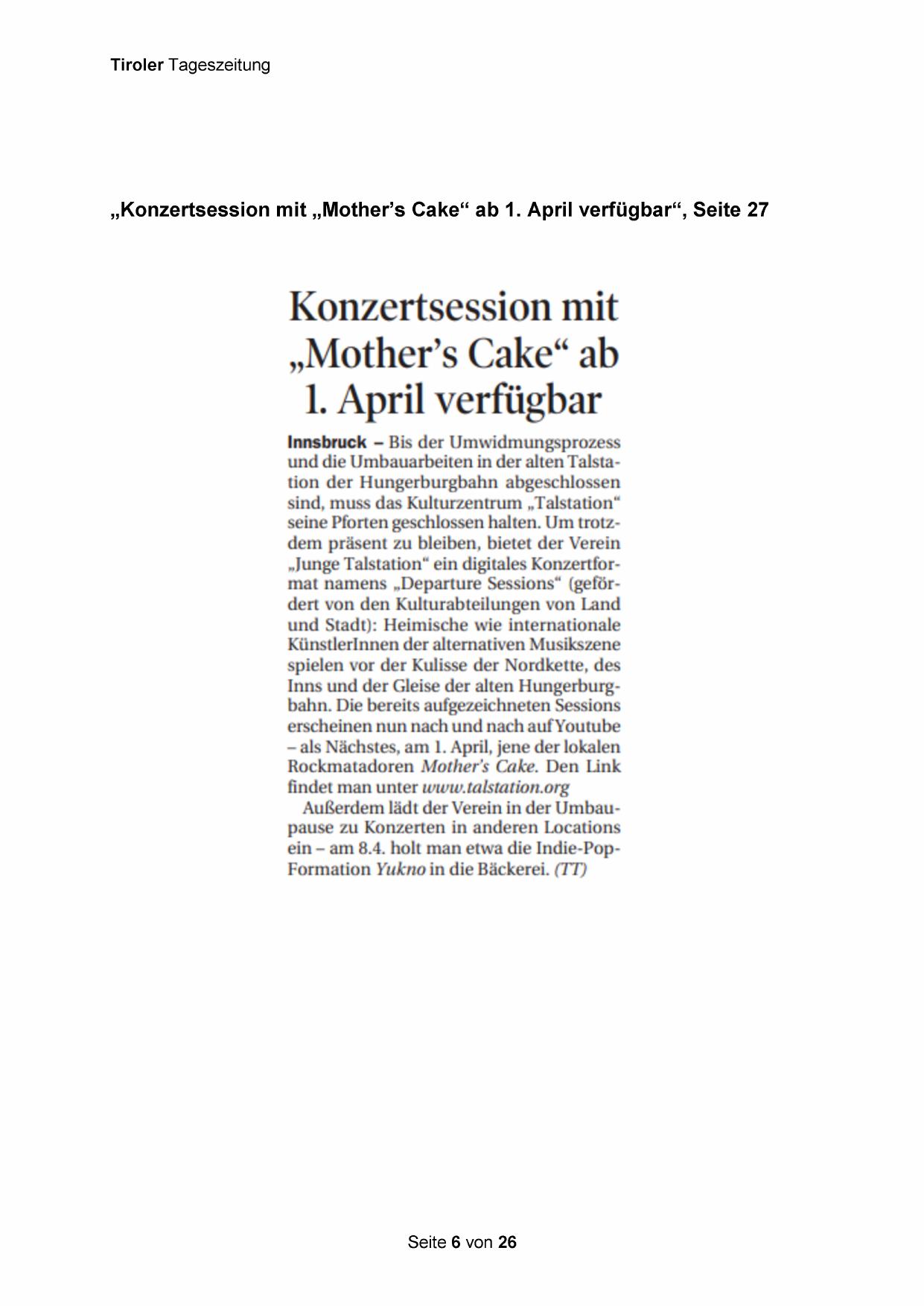 „Konzertsession mit „Mother’s Cake“ ab 1. April verfügbar“, Seite 27