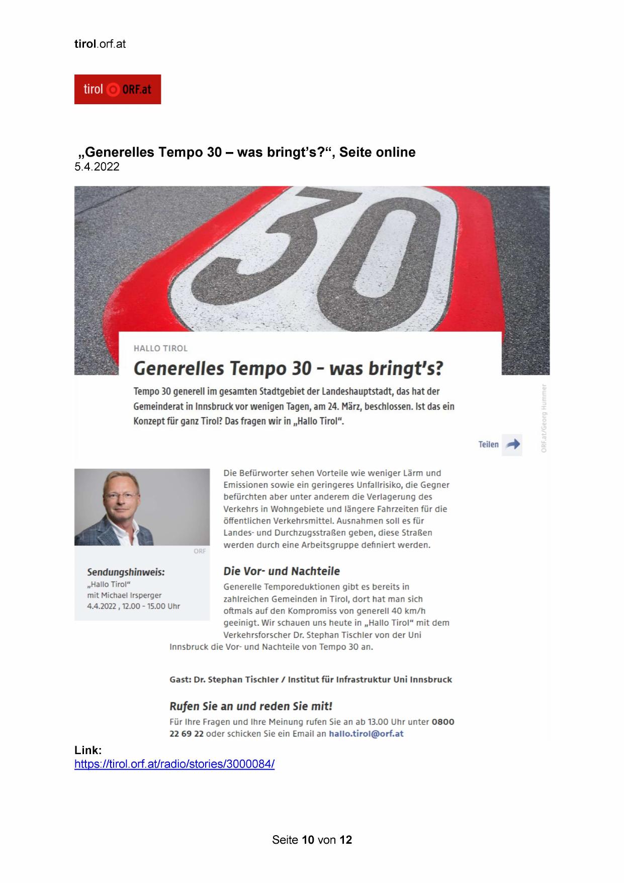 „Generelles Tempo 30 - was bringt’s?“, Seite online