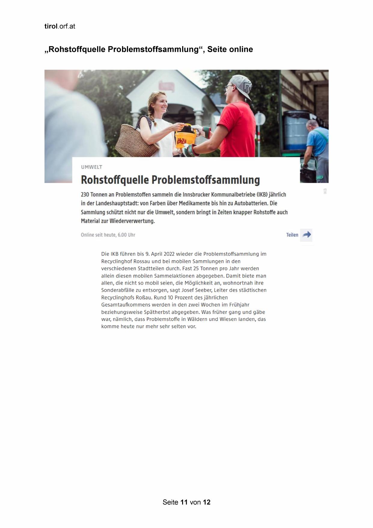 „Rohstoffquelle Problemstoffsammlung“, Seite online