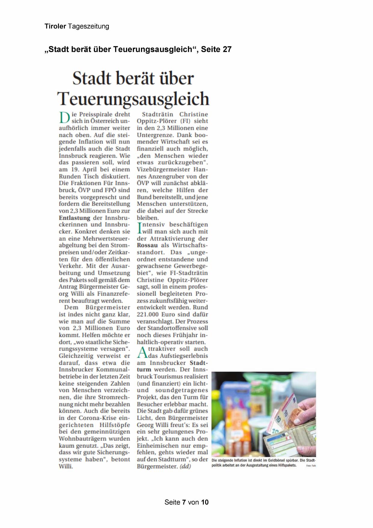 „Stadt berät über Teuerungsausgleich“, Seite 27
