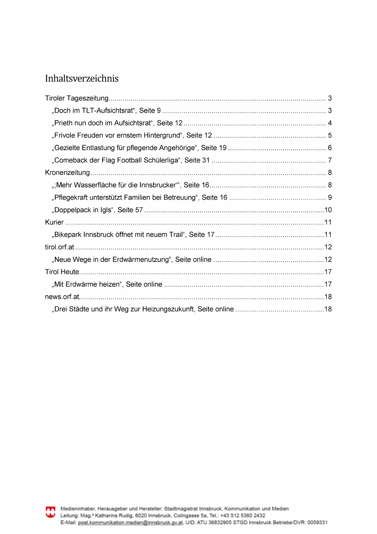 FPYY Medieninhaber, Herausgeber und Hersteller: Stadtmagistrat Innsbruck, Kommunikation und Medien