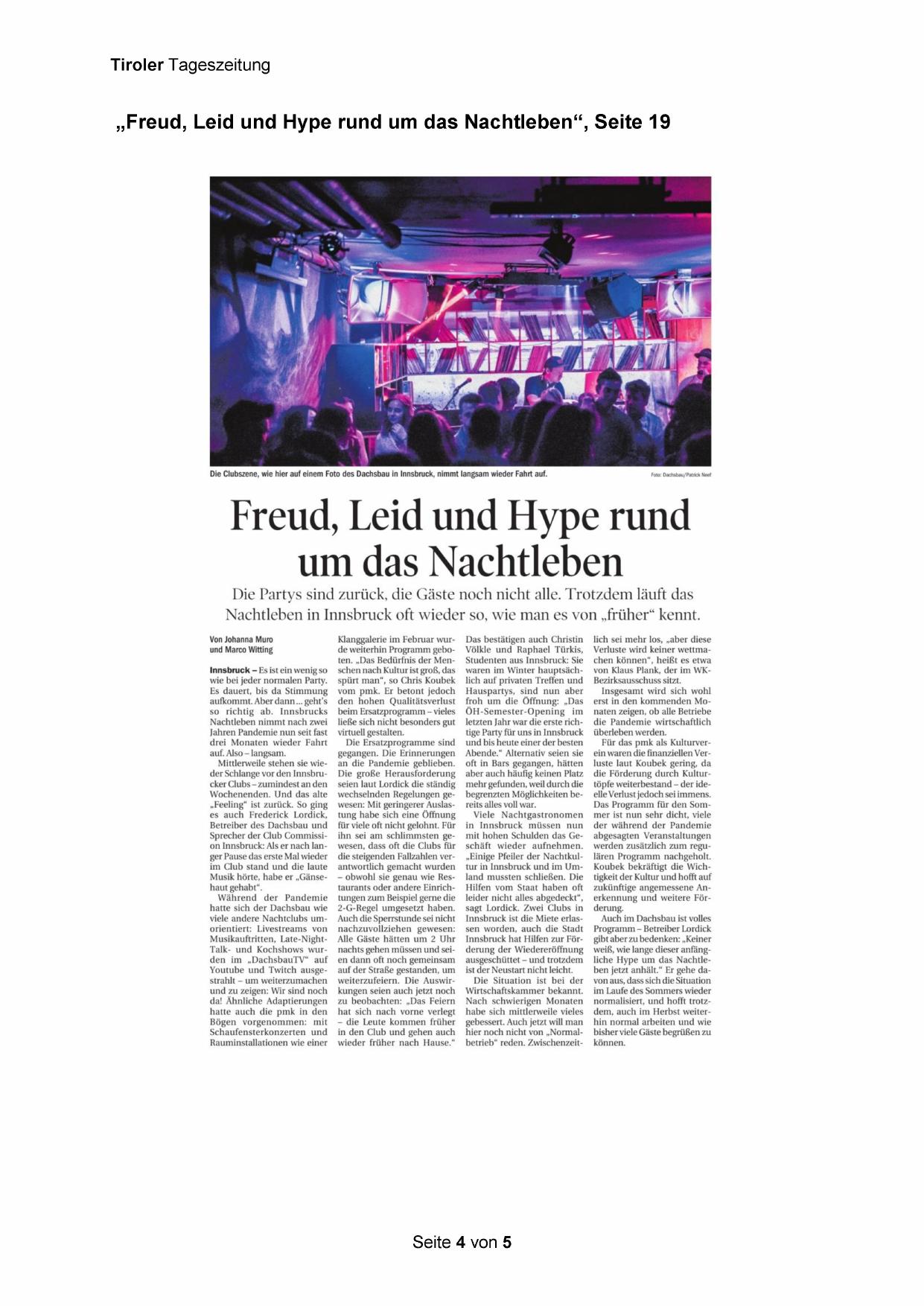 „Freud, Leid und Hype rund um das Nachtleben“, Seite 19