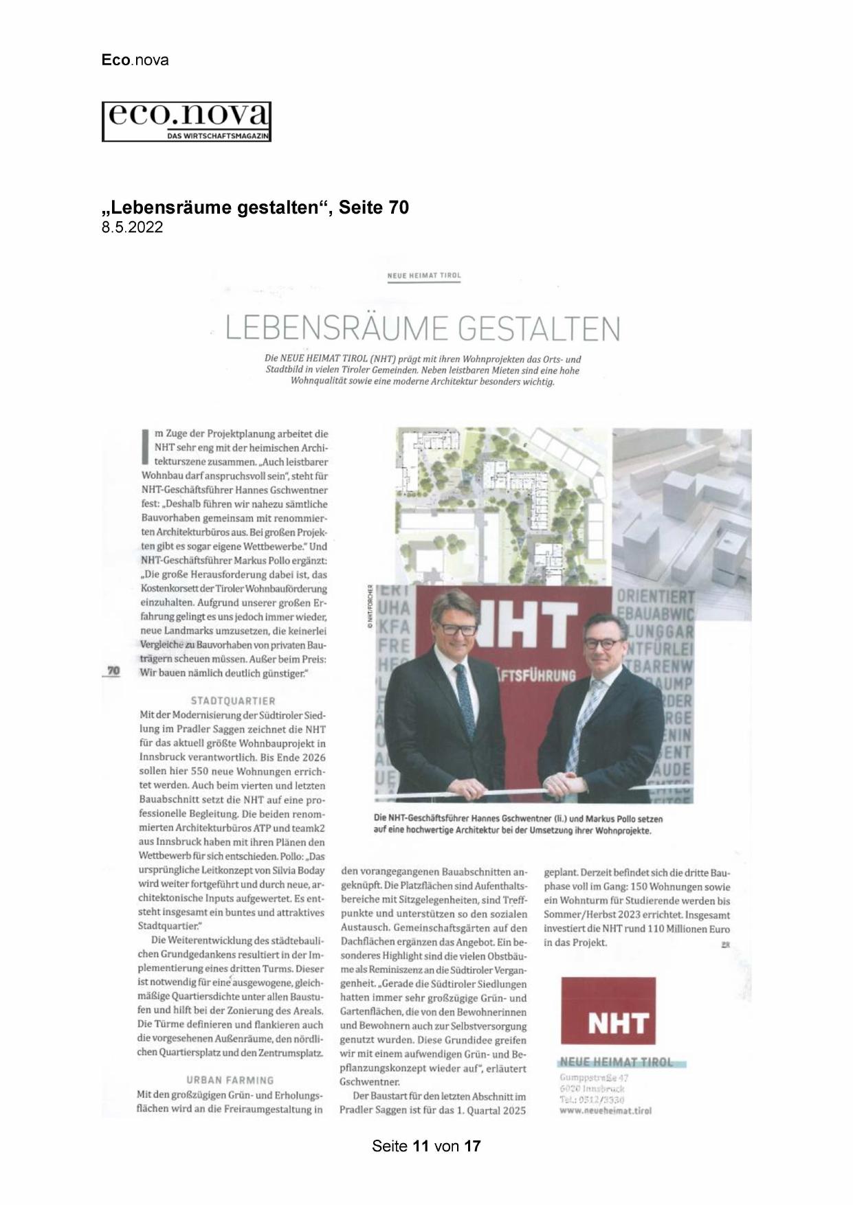 Die NEUE HEIMAT TIROL (NHT) prägt mit ihren Wohnprojekten das Orts- und