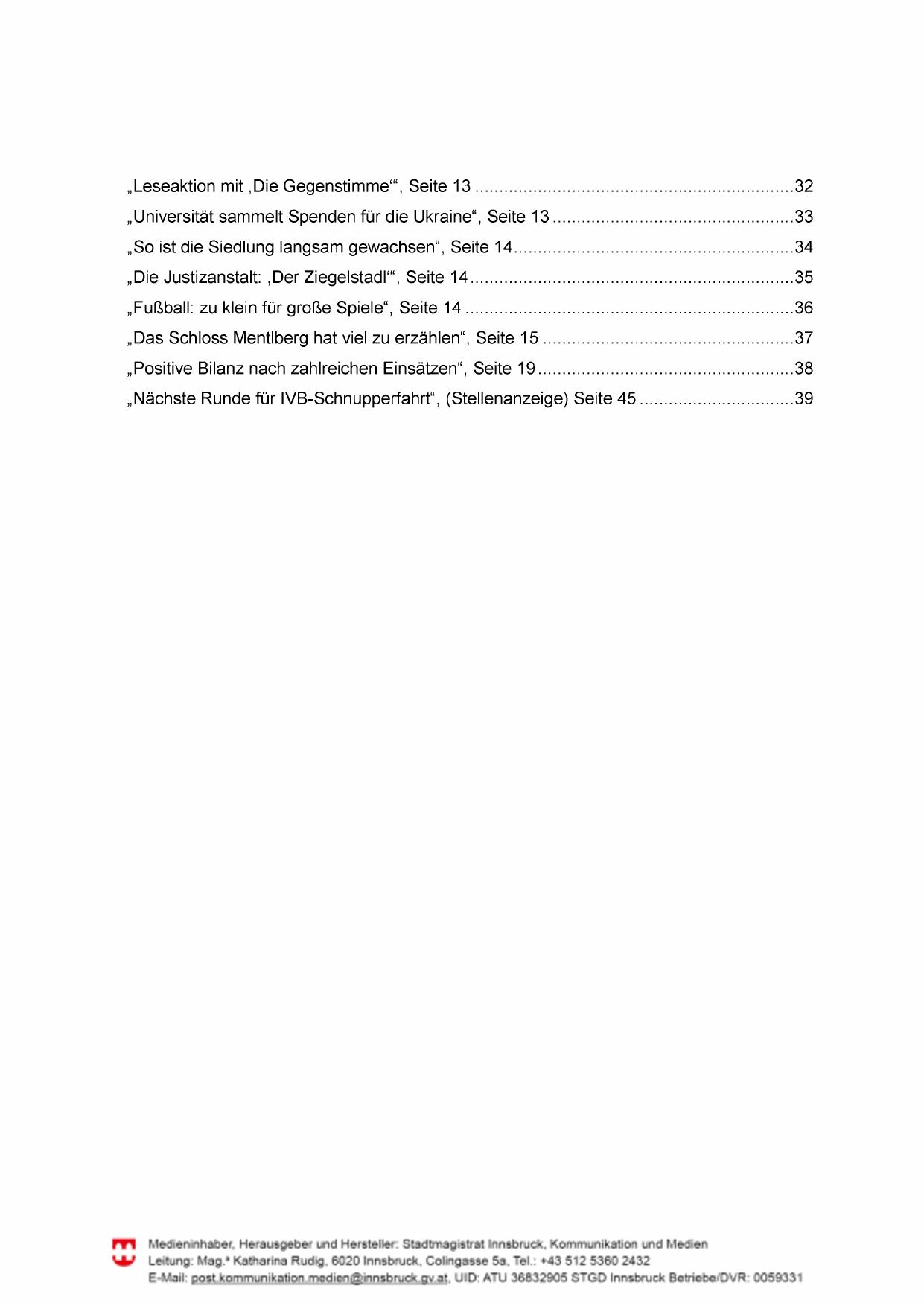 FPYY Medieninhaber, Herausgeber und Hersteller: Stadtmagistrat Innsbruck, Kommunikation und Medien