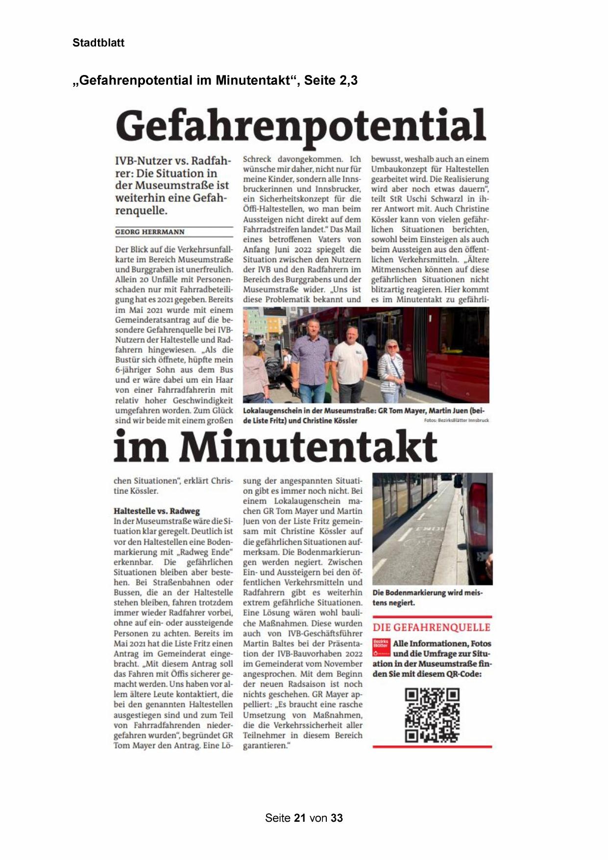Gemeinderatsantrag auf die besondere Gefahrenquelle bei IVB-