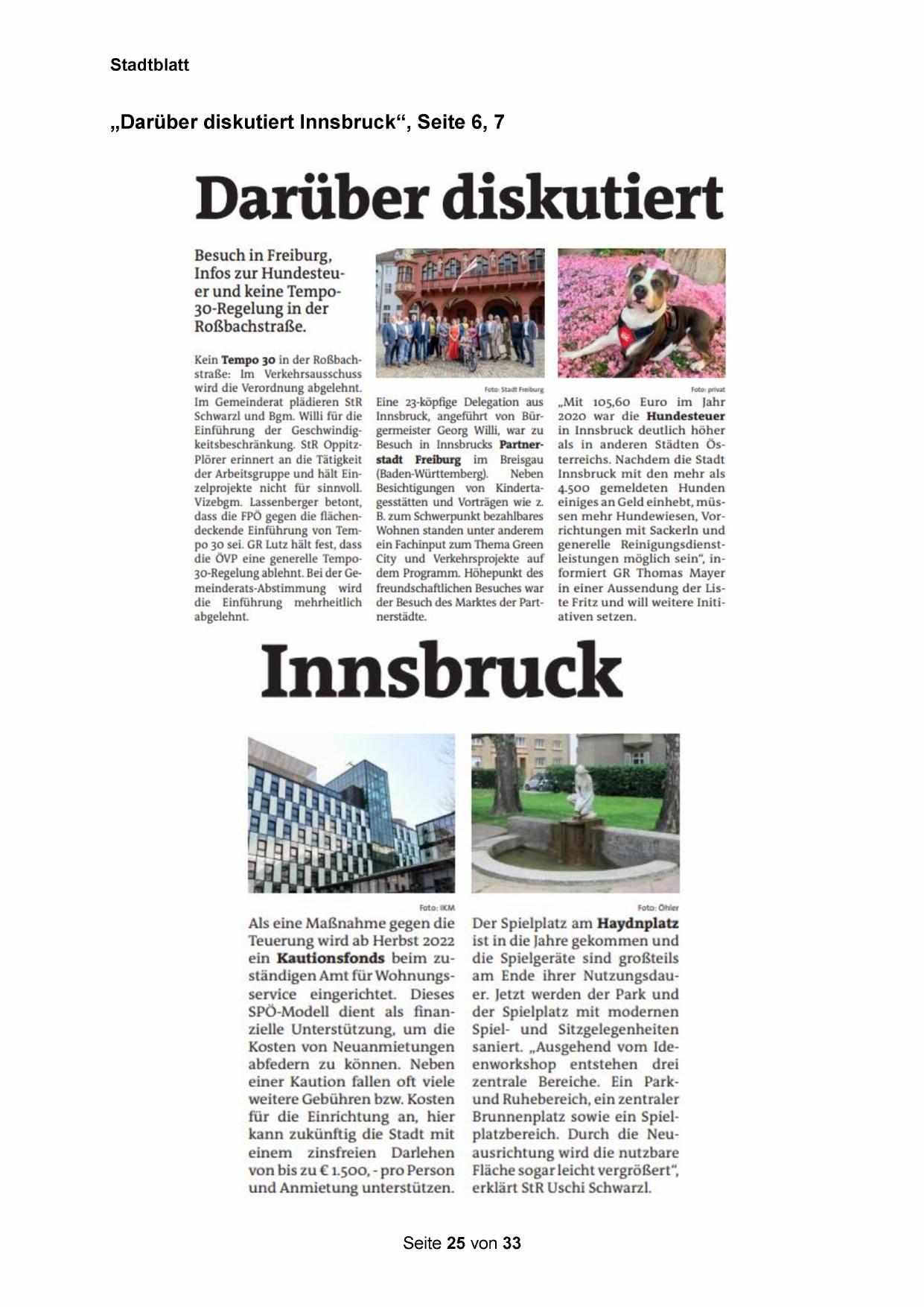 „Darüber diskutiert Innsbruck“, Seite 6, 7