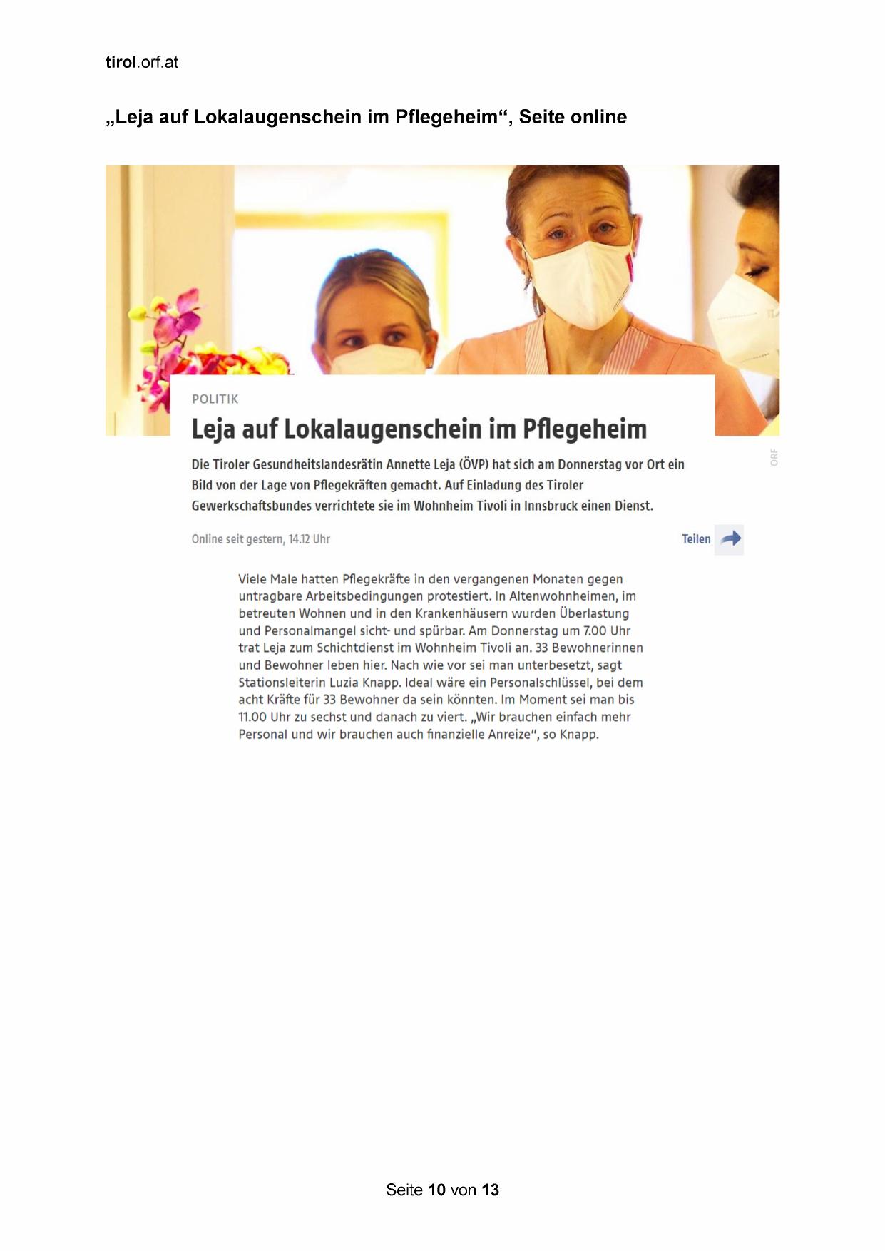 „Leja auf Lokalaugenschein im Pflegeheim“, Seite online