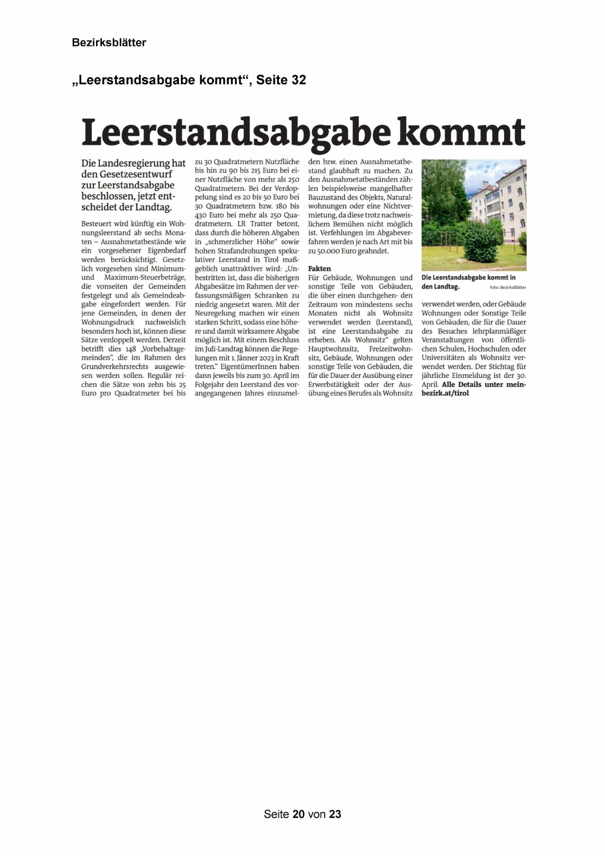 hohen Strafandrohungen spekulativer Leerstand in Tirol maßgeblich unattraktiver wird: „Unbestritten ist, dass die bisherigen