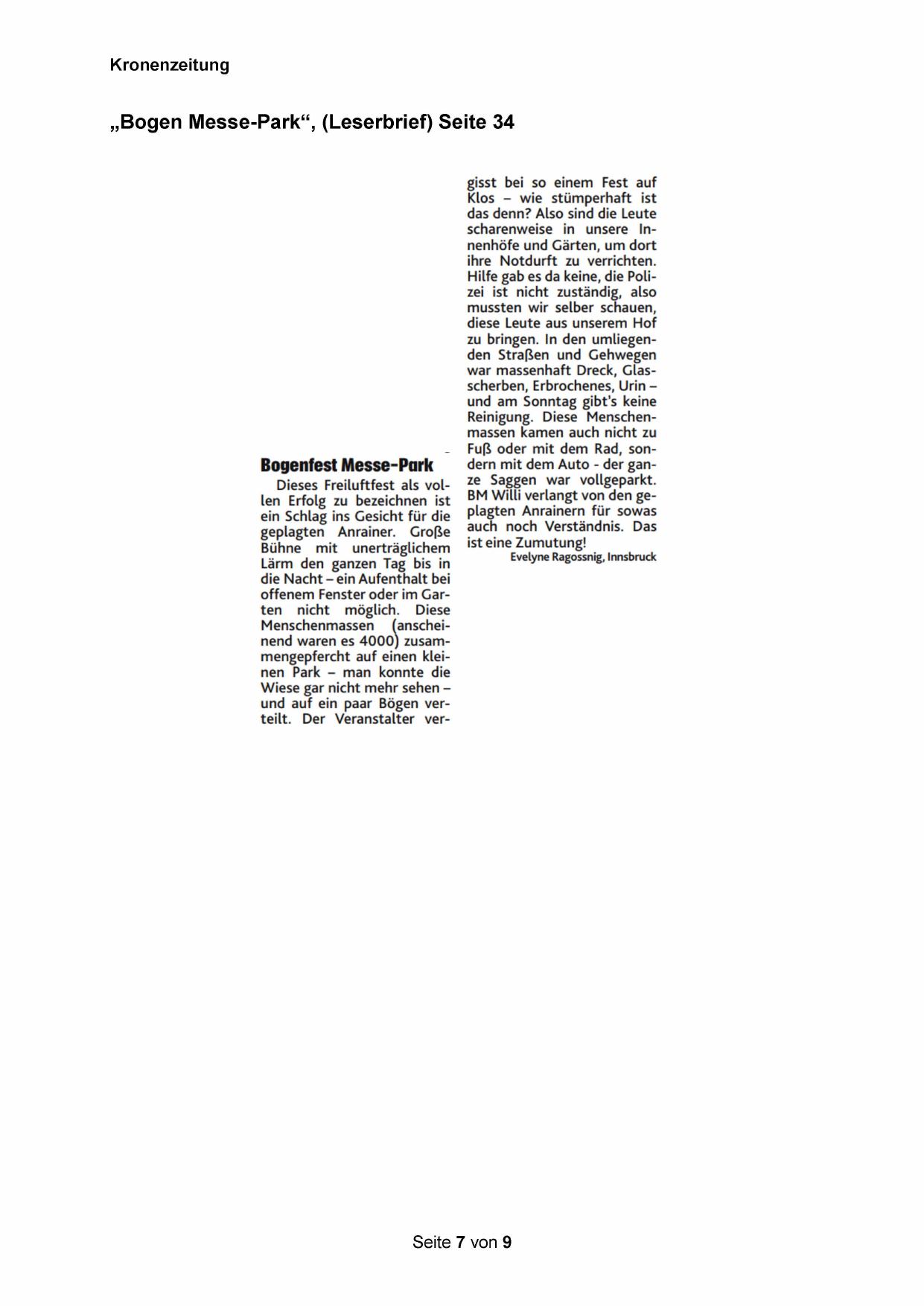 „Bogen Messe-Park“, (Leserbrief) Seite 34