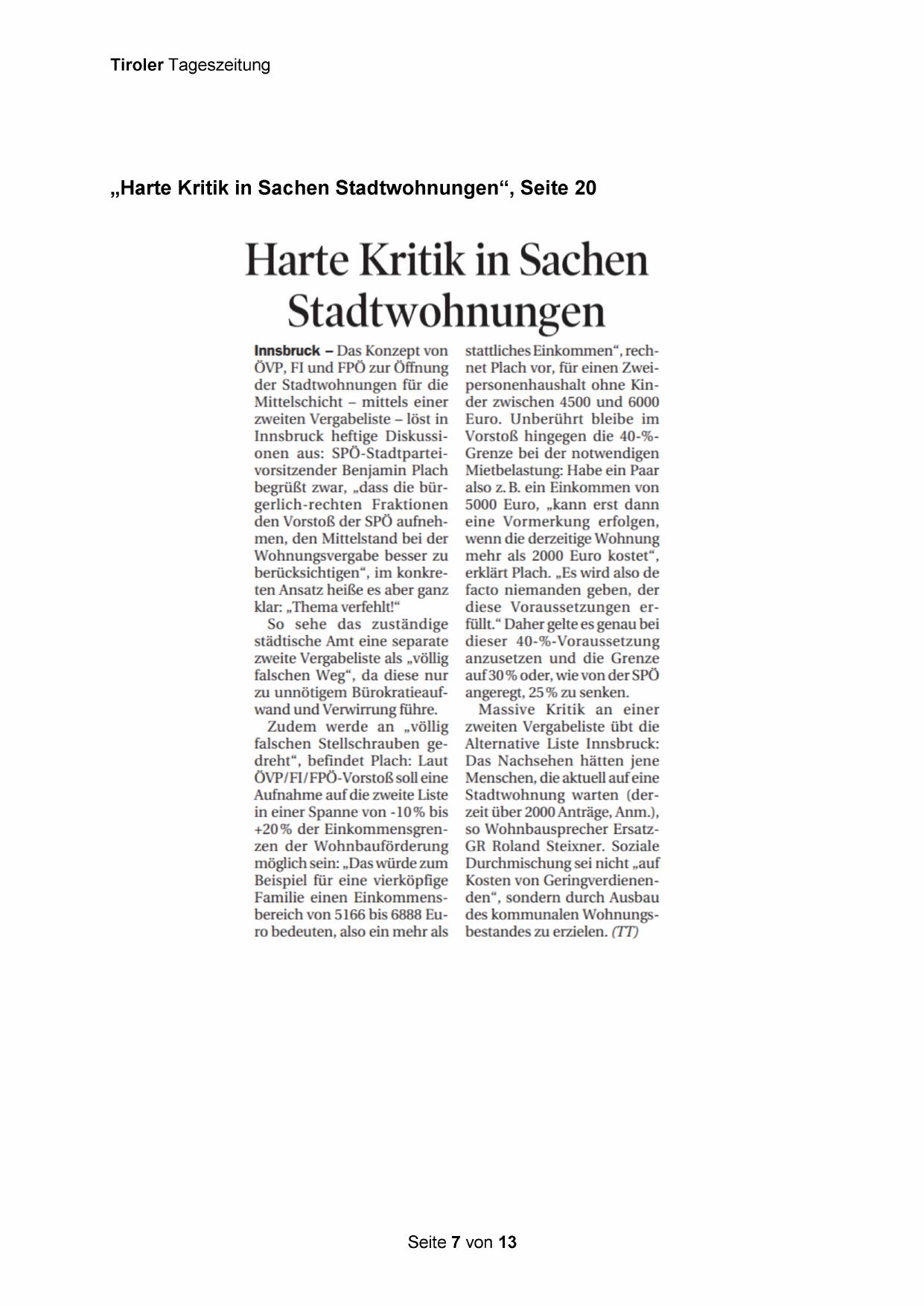 „Harte Kritik in Sachen Stadtwohnungen“, Seite 20