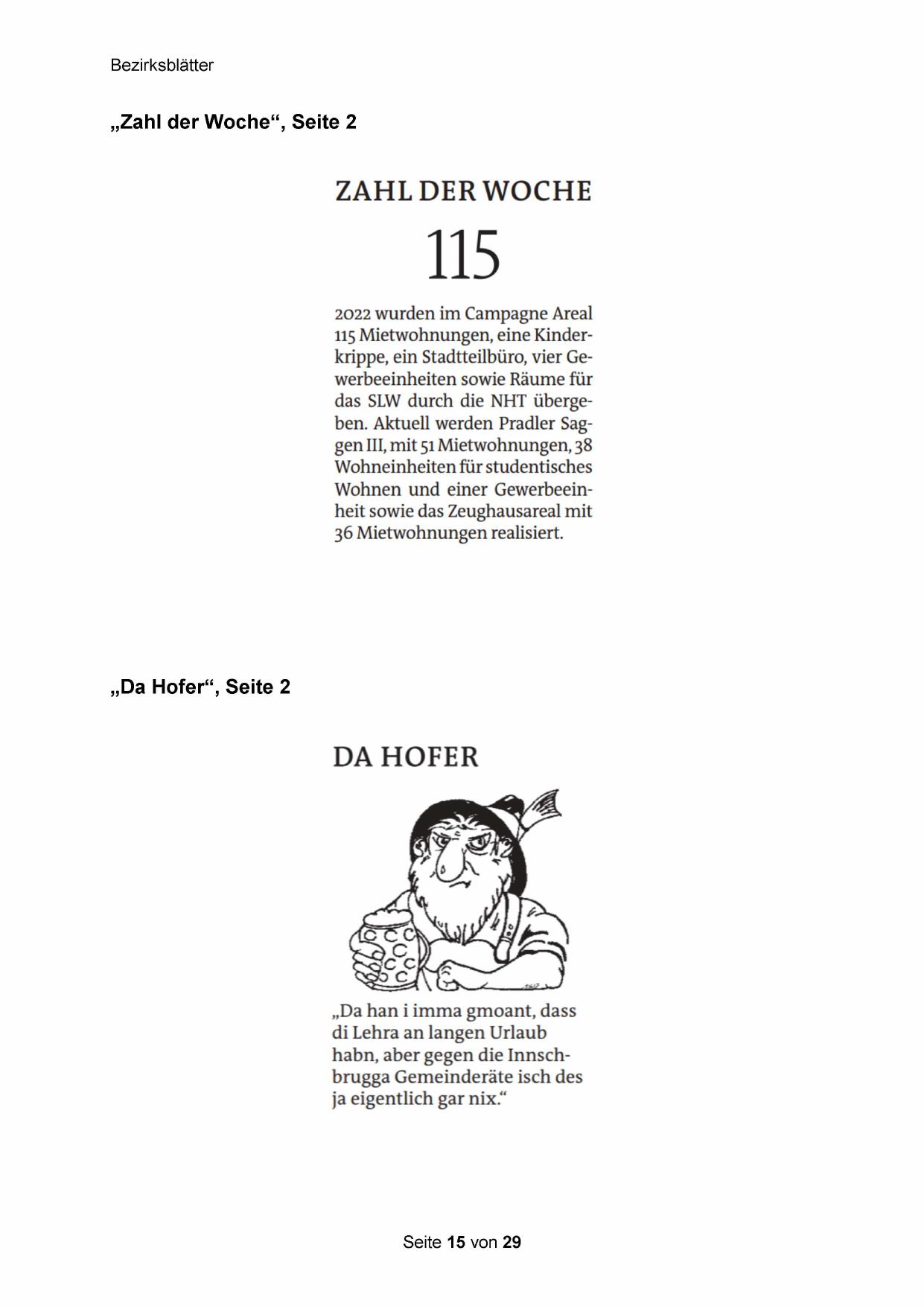 das SLW durch die NHT übergeben. Aktuell werden Pradler Saggen III, mit 51 Mietwohnungen, 38
