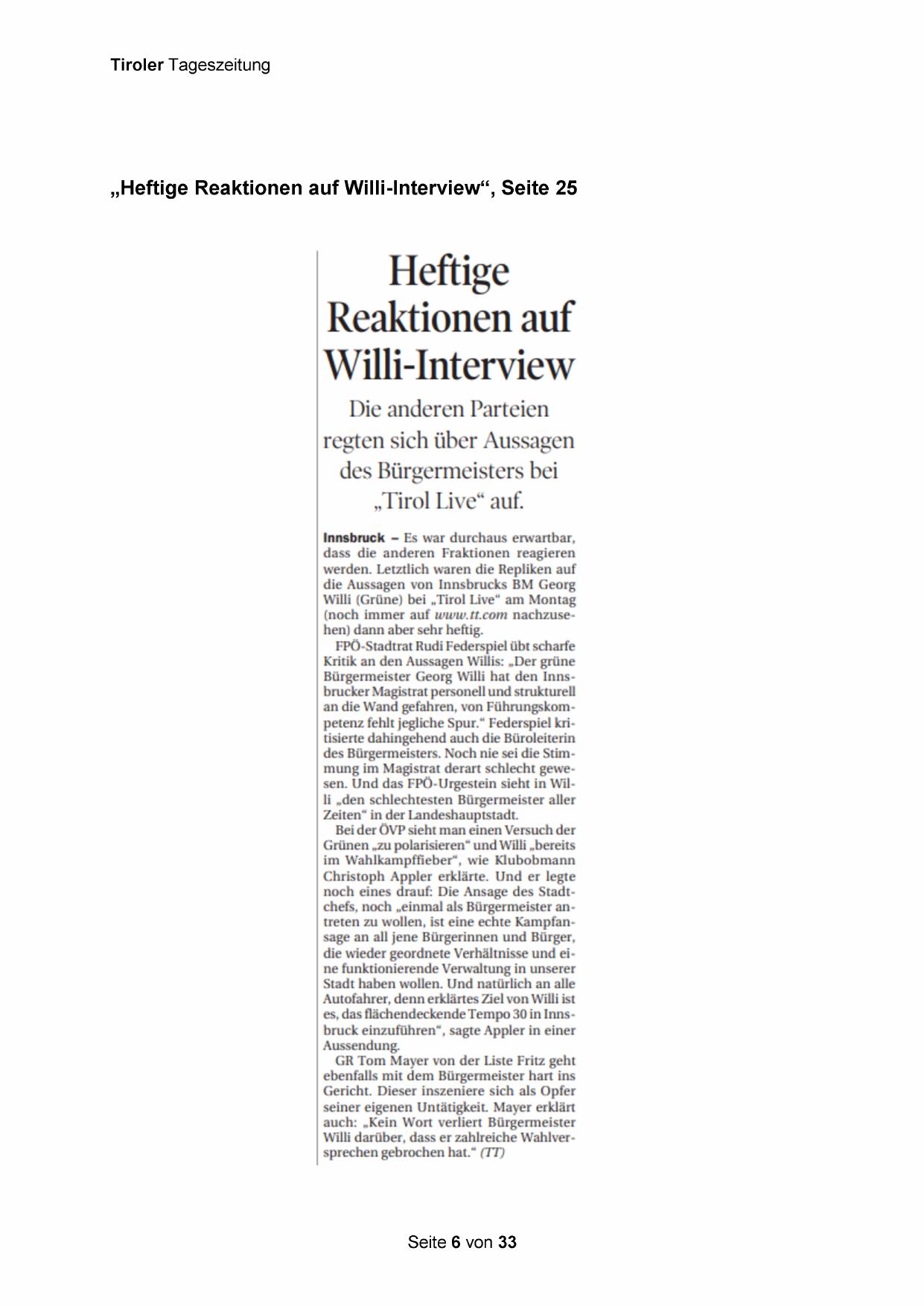 „Heftige Reaktionen auf Willi-Interview“, Seite 25