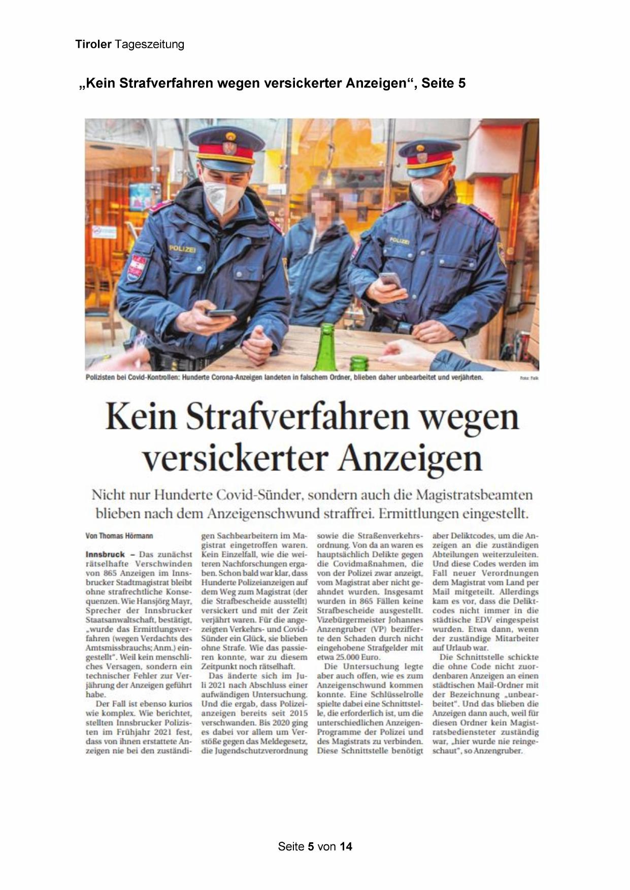 „Kein Strafverfahren wegen versickerter Anzeigen“, Seite 5