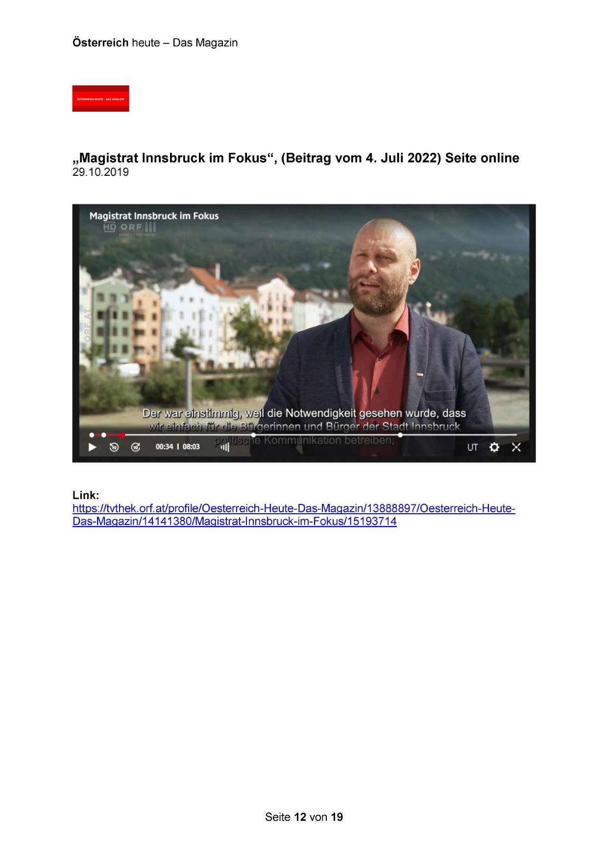„Magistrat Innsbruck im Fokus“, (Beitrag vom 4. Juli 2022) Seite online