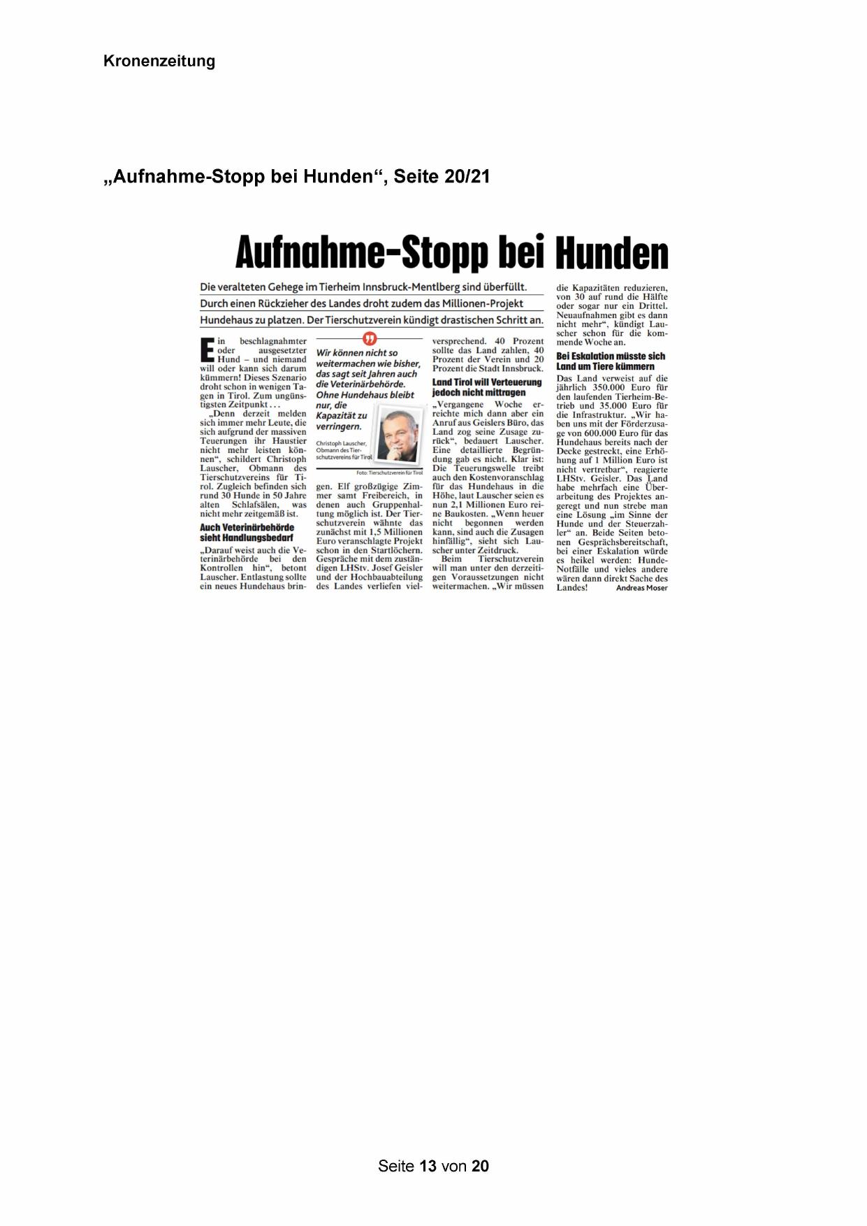 Tierschutzvereins für Tirol. Zugleich befinden sich