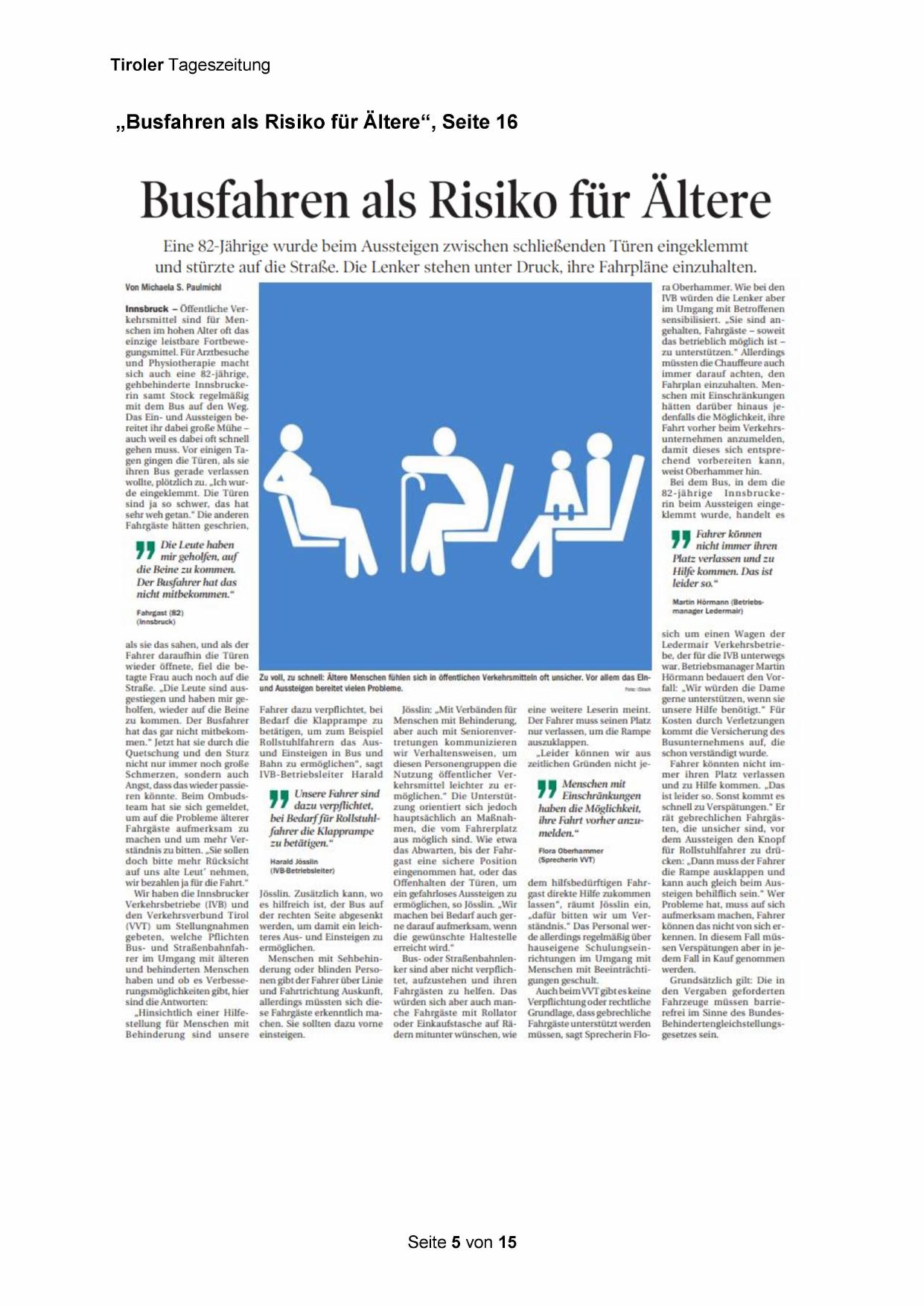 Innsbruck — Öffentliche Verkehrsmittel sind für Menschen im hohen Alter oft das