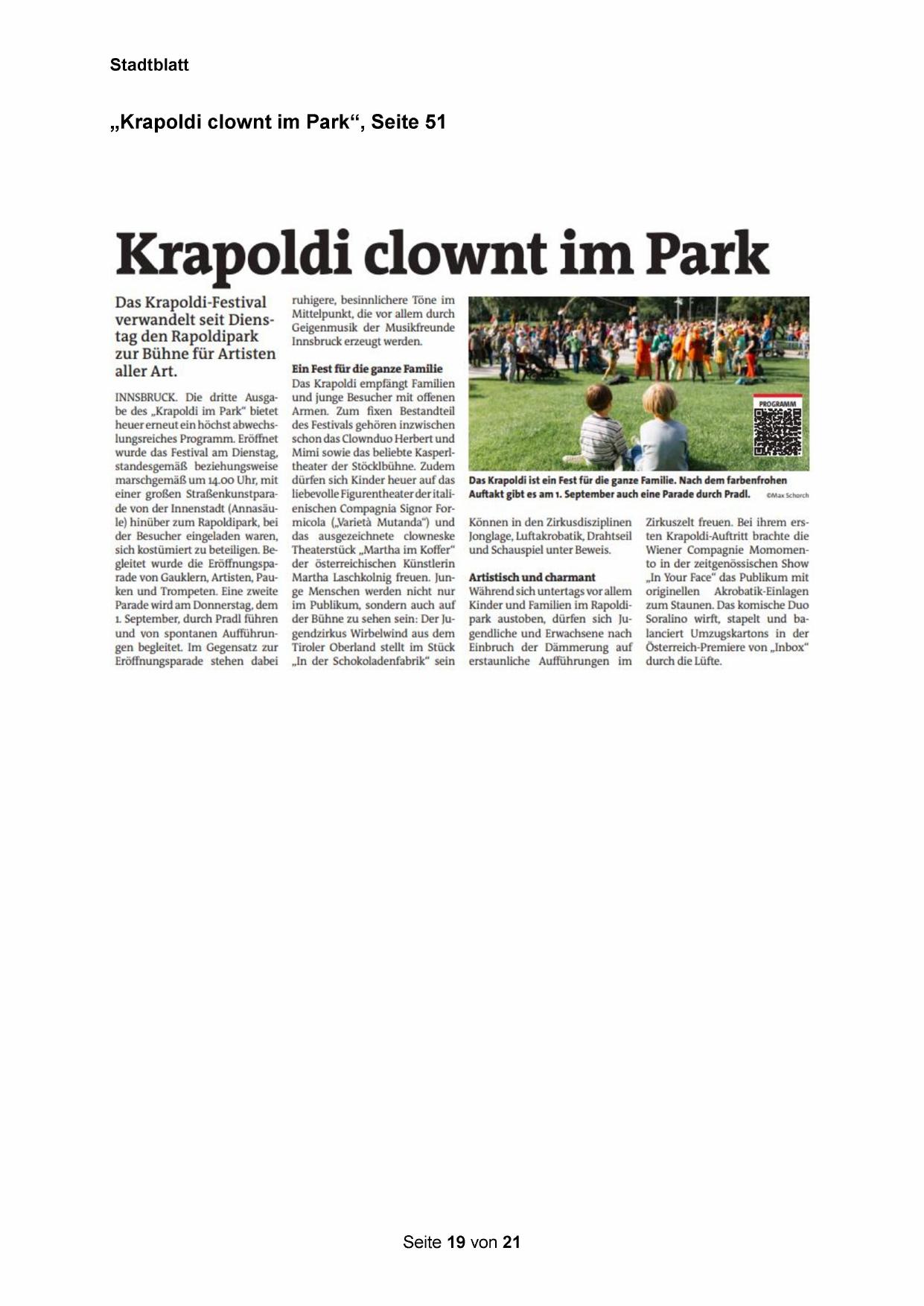 INNSBRUCK. Die dritte Ausgabe des „Krapoldi im Park“ bietet