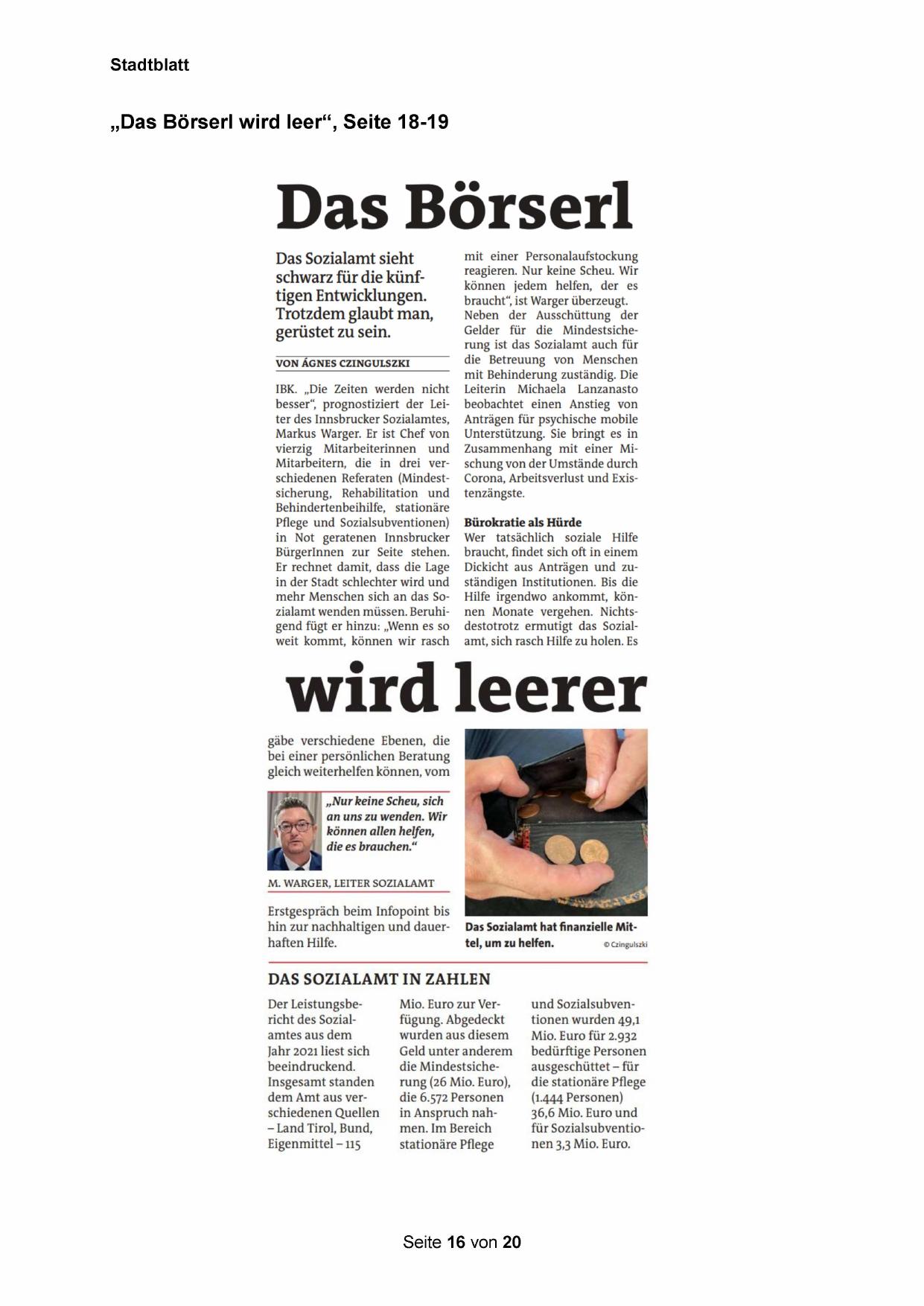 „Das Börserl wird leer“, Seite 18-19