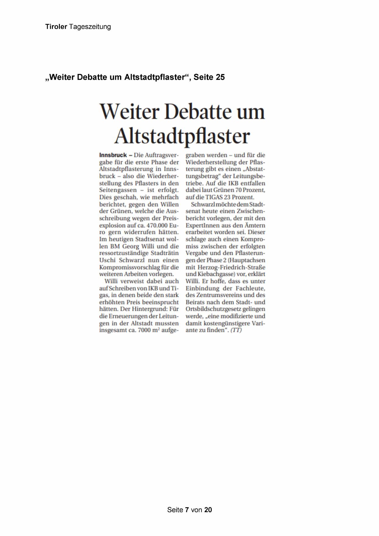 „Weiter Debatte um Altstadtpflaster“, Seite 25