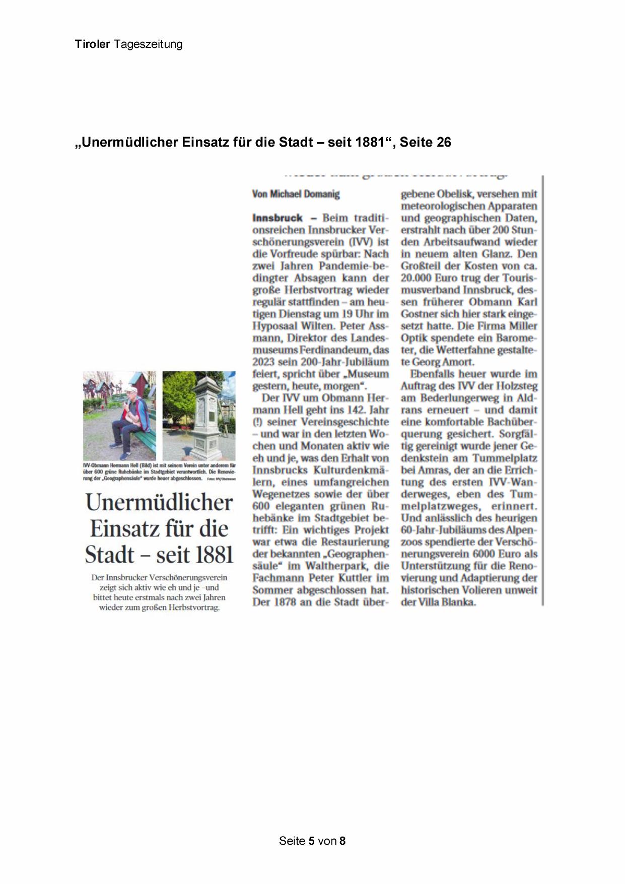 über 600 grüne Ruhebänke im Stadtgebiet verantwortlich. Die Renovierung der „Geographensäule“ wurde heuer abgeschlossen, Fın« MWyotemoa