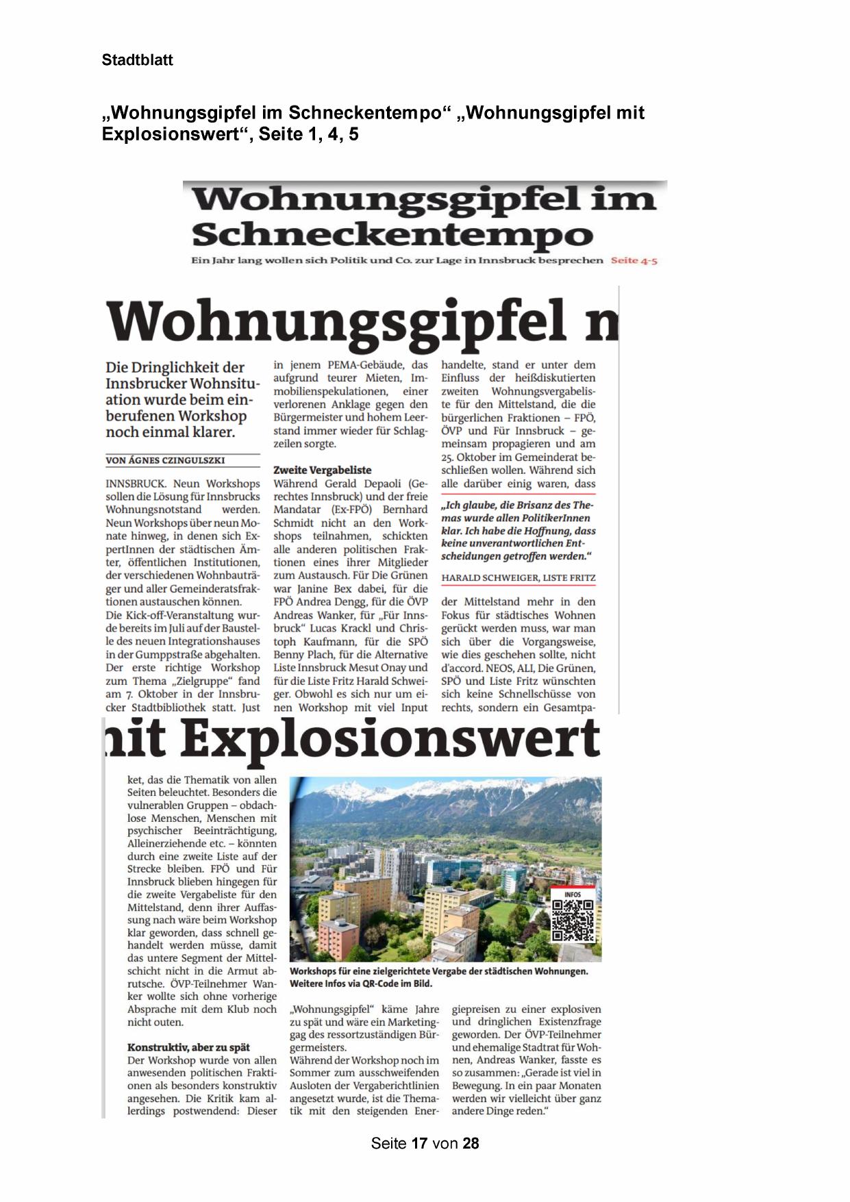 Innsbrucker Wohnsituation wurde beim einberufenen Workshop