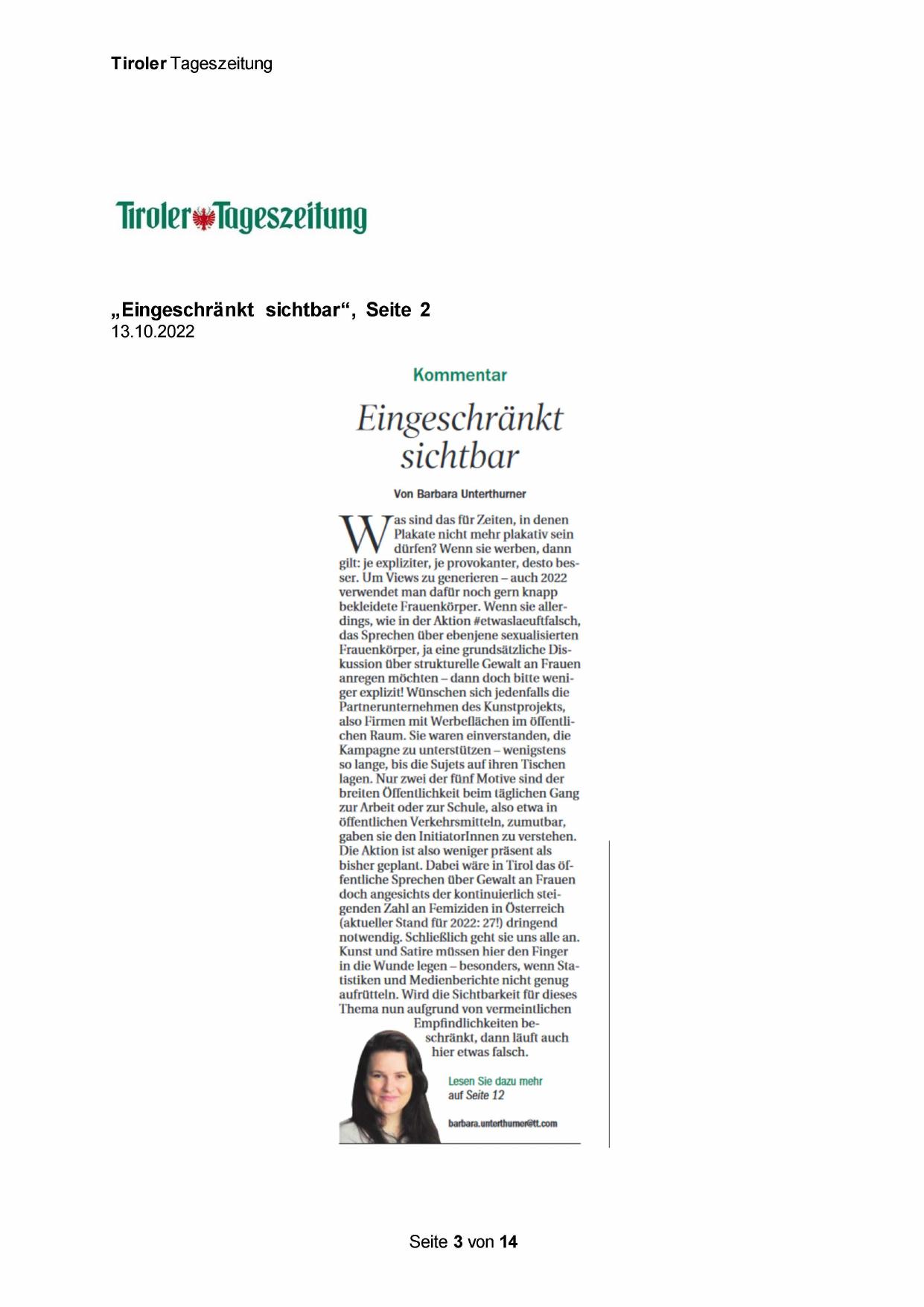 bisher geplant. Dabei wäre in Tirol das öffentliche Sprechen über Gewalt an Frauen