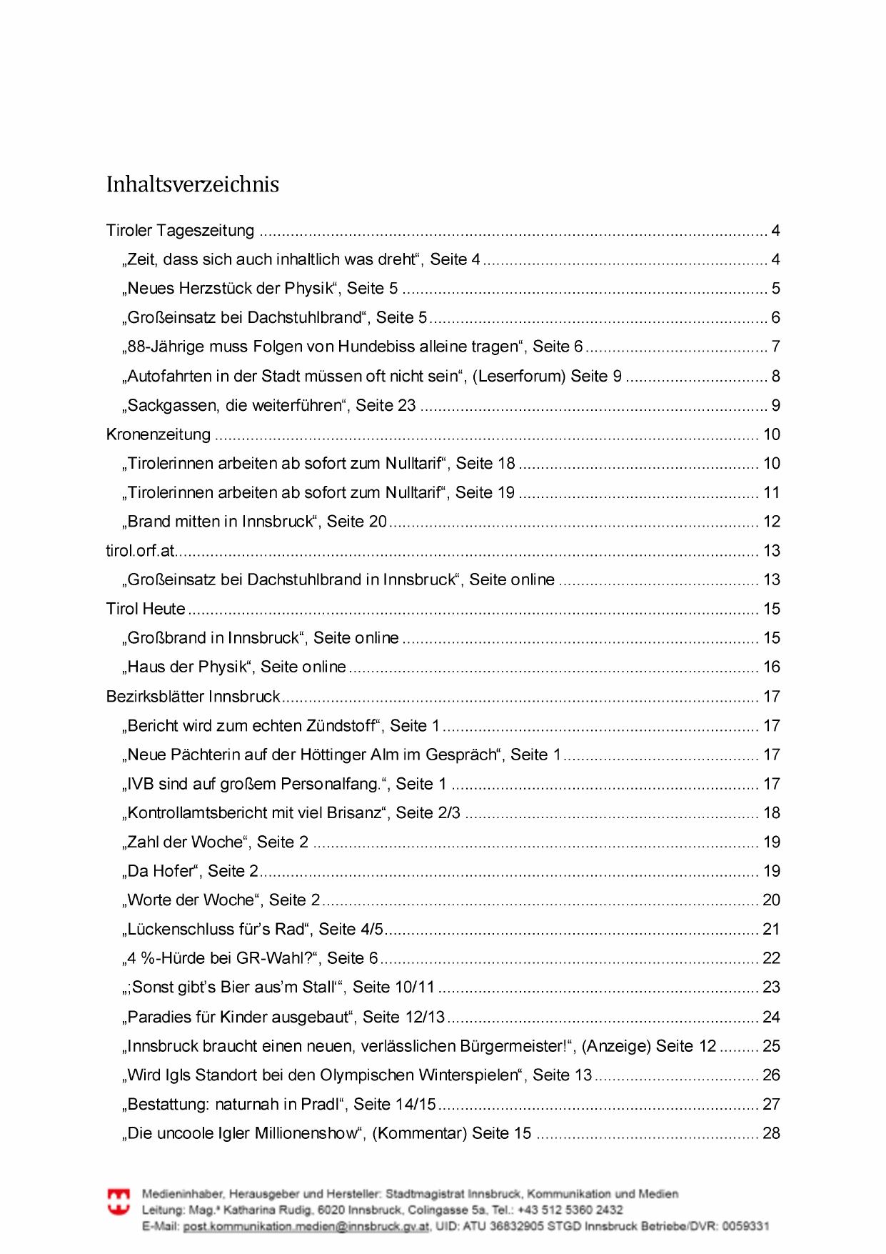 „Innsbruck braucht einen neuen, verlässlichen Bürgermeister!“, (Anzeige) Seite 12......... 25