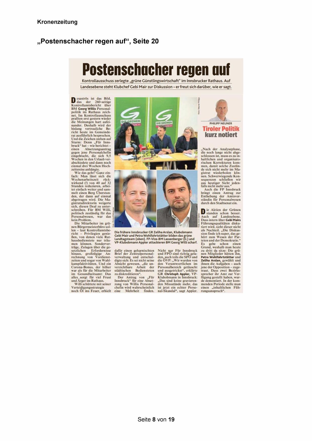 Kontrollausschuss zerlegte „grüne Günstlingswirtschaft“ im Innsbrucker Rathaus. Auf