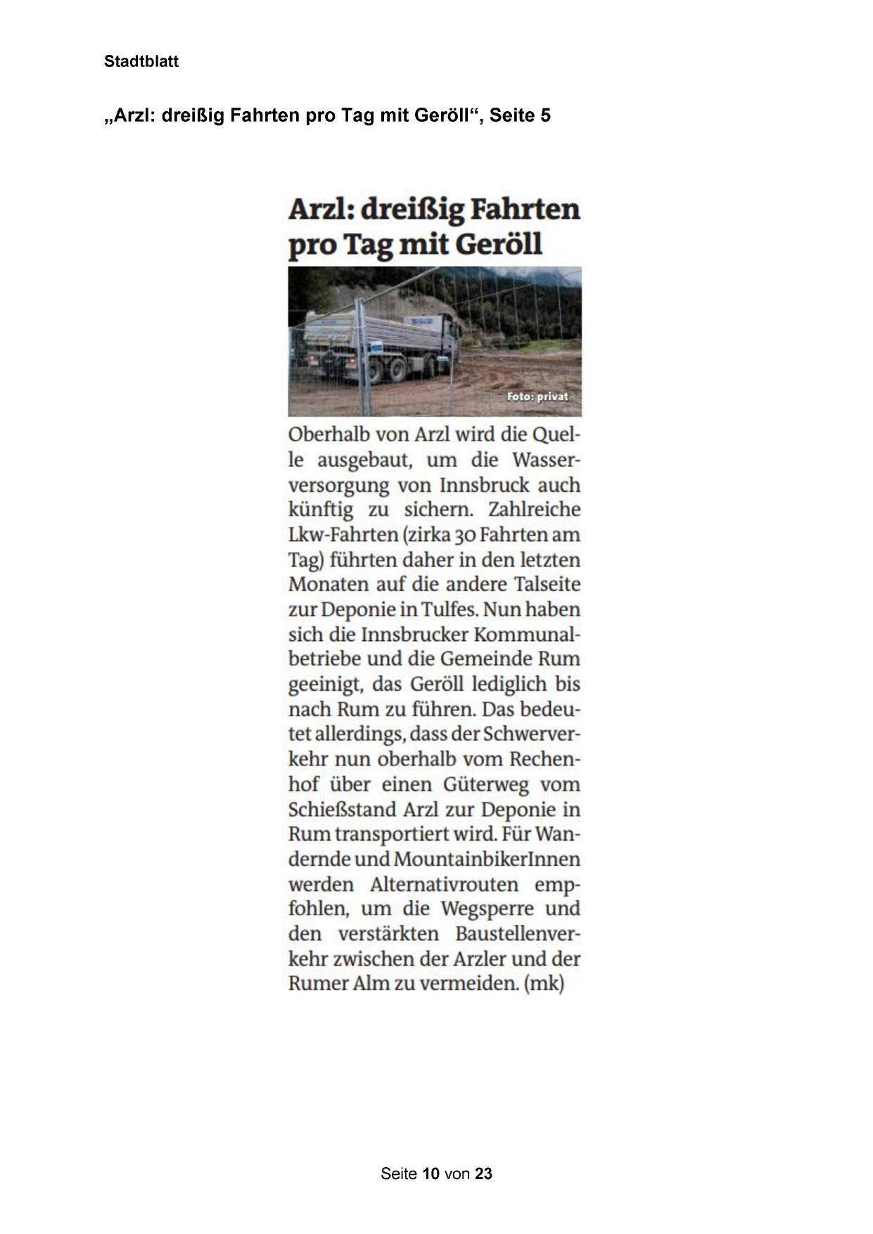 „Arzl: dreißig Fahrten pro Tag mit Geröll“, Seite 5