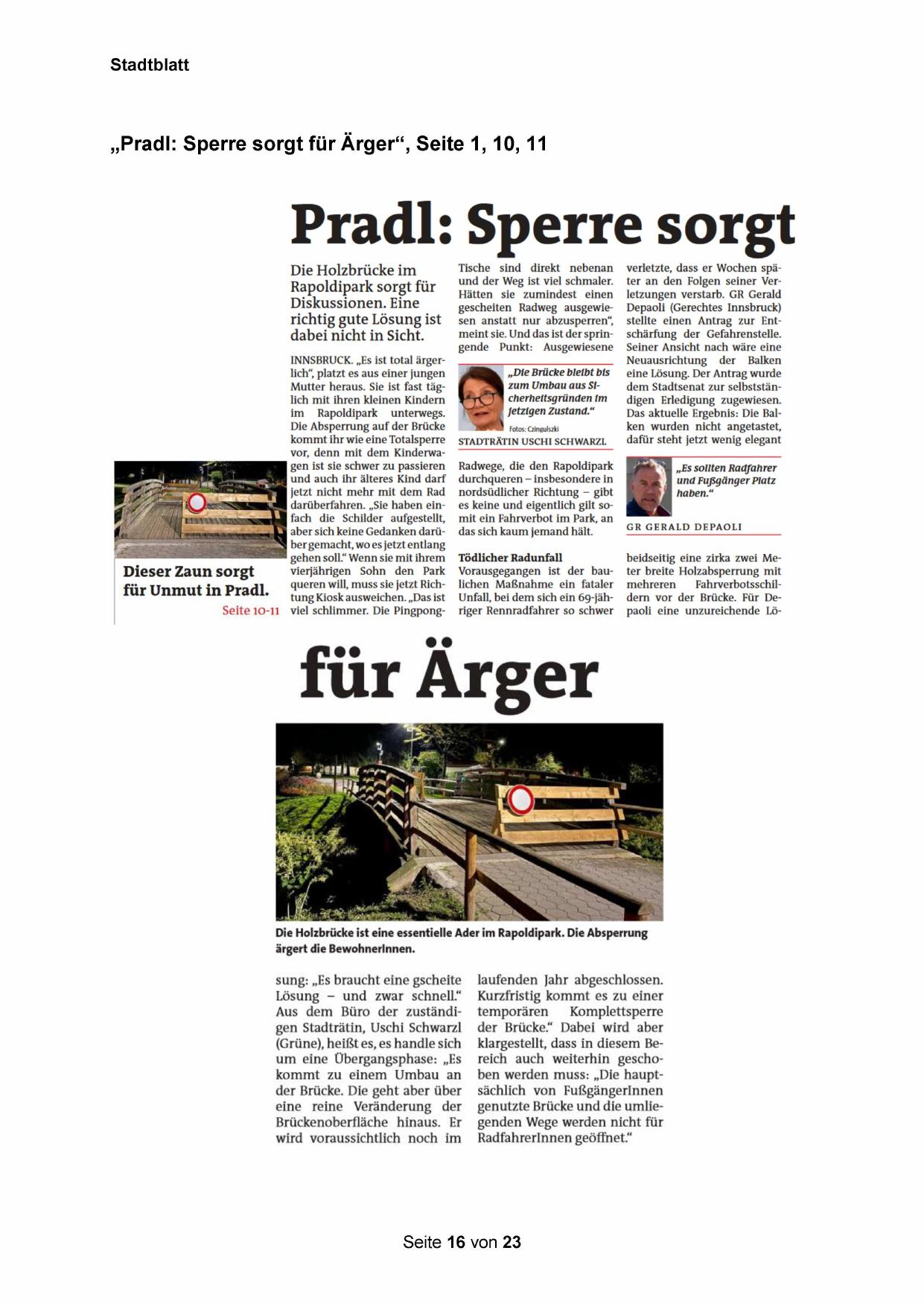 „Pradl: Sperre sorgt für Ärger“, Seite 1, 10, 11