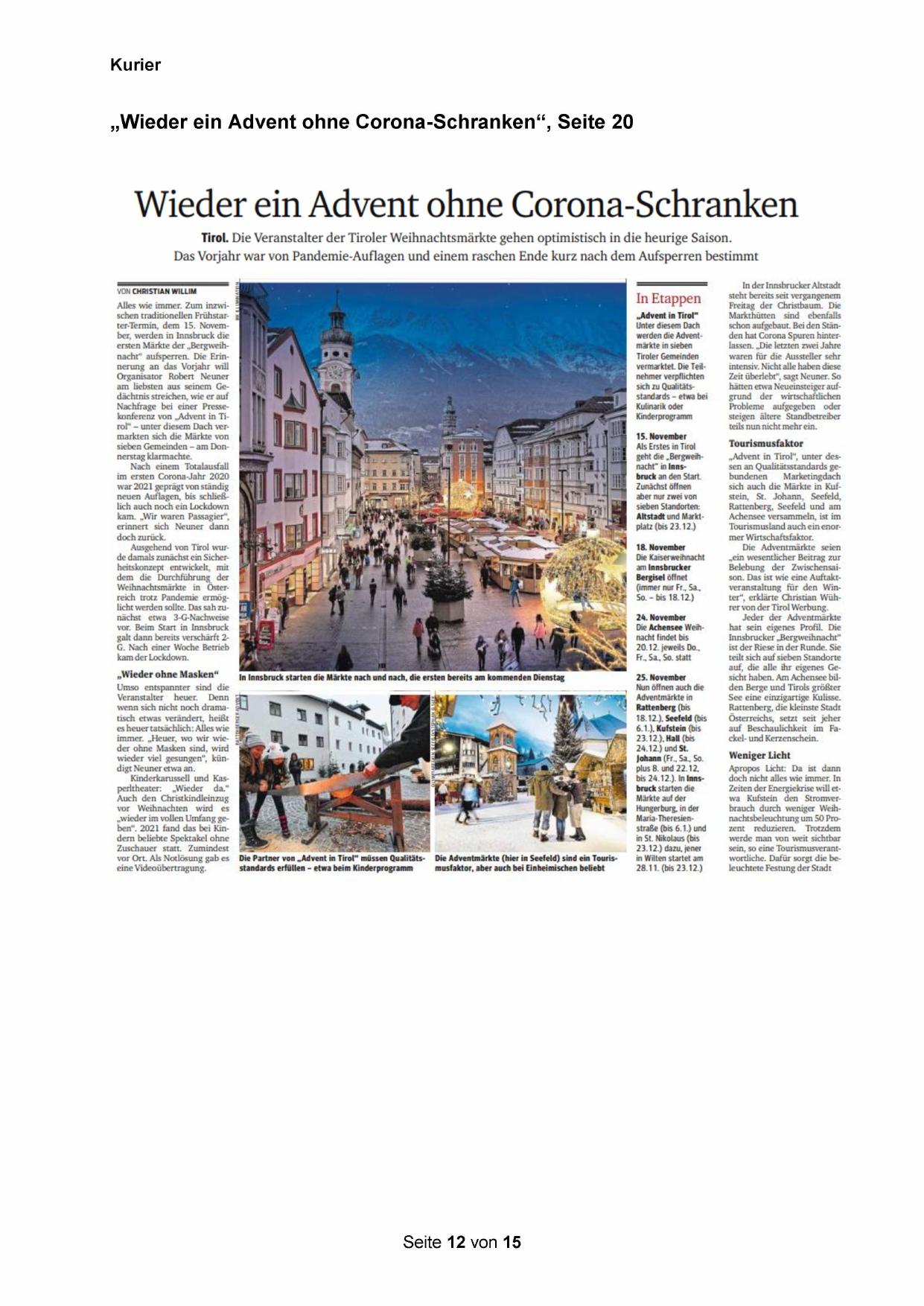 „Wieder ein Advent ohne Corona-Schranken“, Seite 20