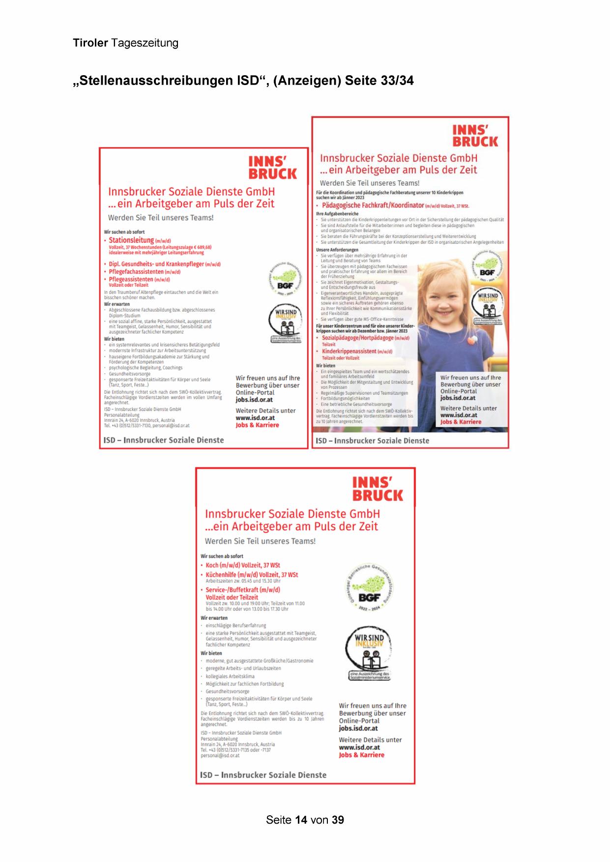 „Stellenausschreibungen ISD“, (Anzeigen) Seite 33/34