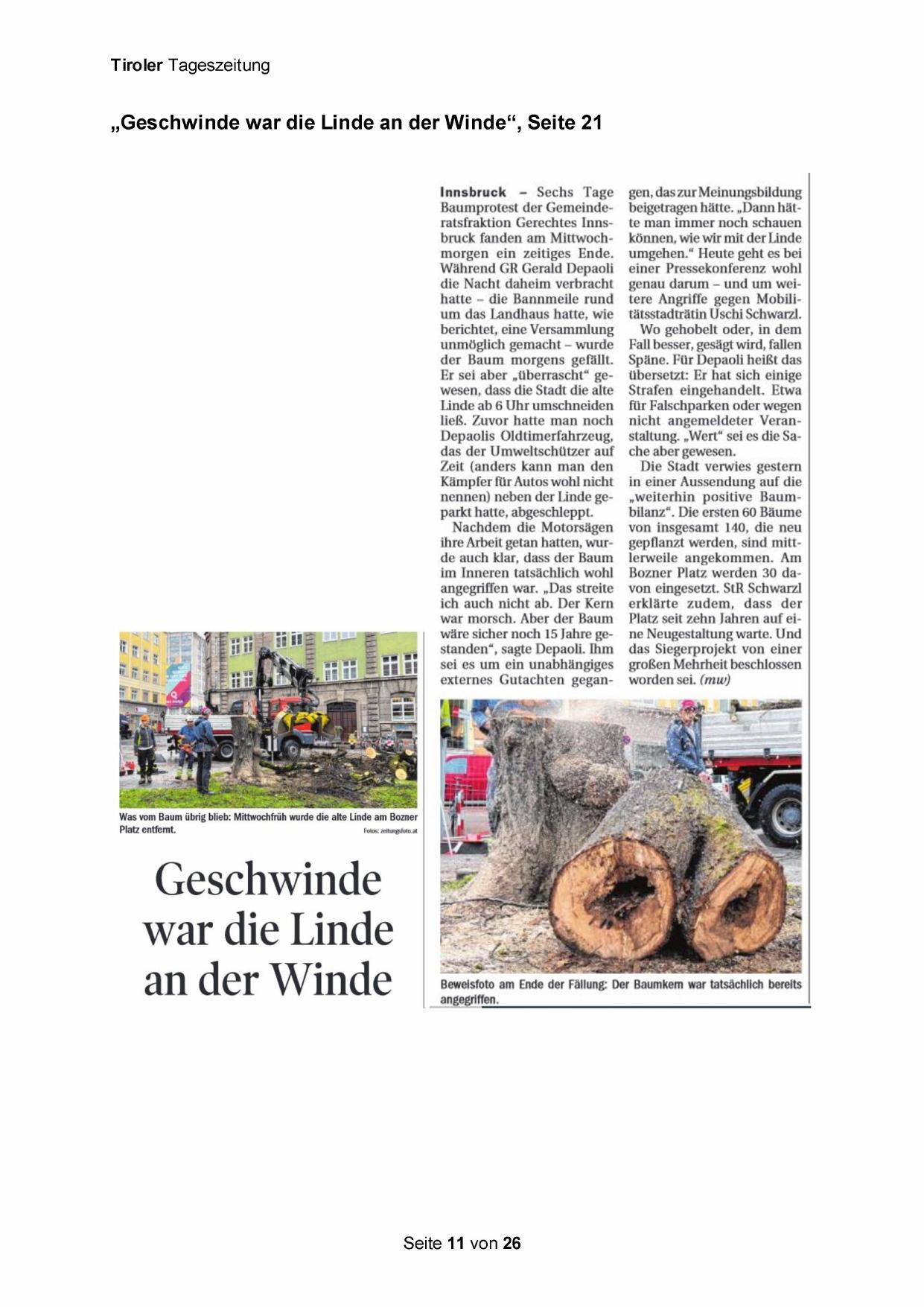 Baumprotest der Gemeinderatsfraktion Gerechtes Innsbruck fanden am Mittwochmorgen ein zeitiges Ende.