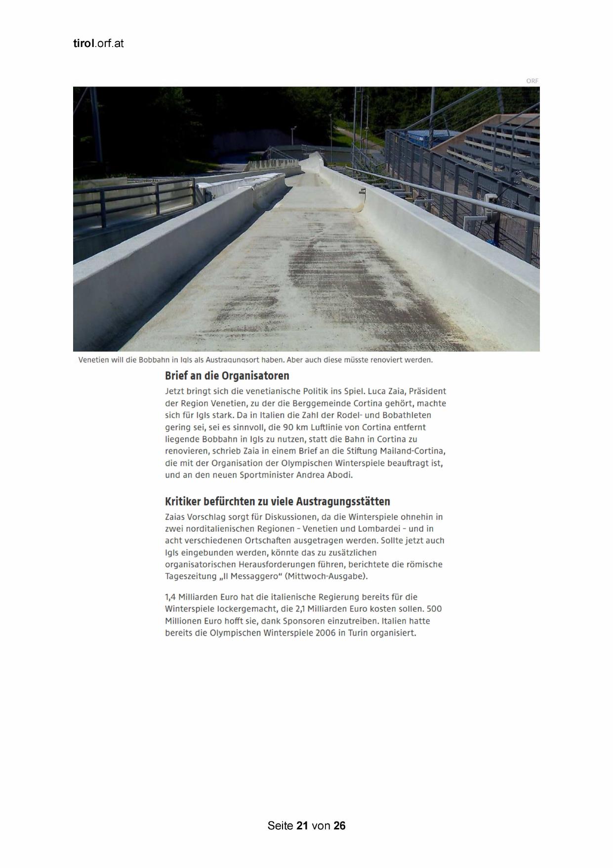 liegende Bobbahn in Igls zu nutzen, statt die Bahn in Cortina zu
