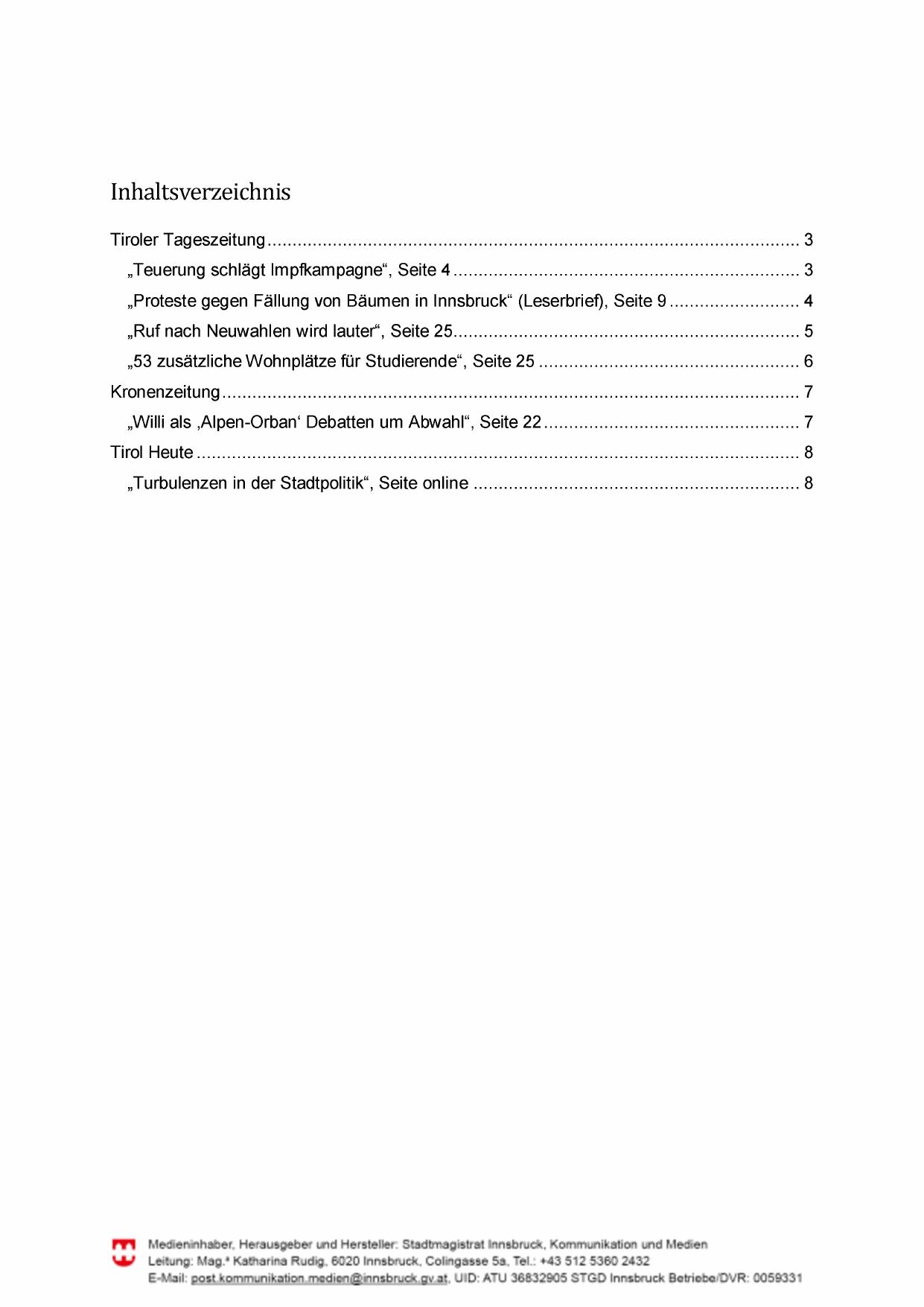 „Proteste gegen Fällung von Bäumen in Innsbruck“ (Leserbrief), Seite 9............