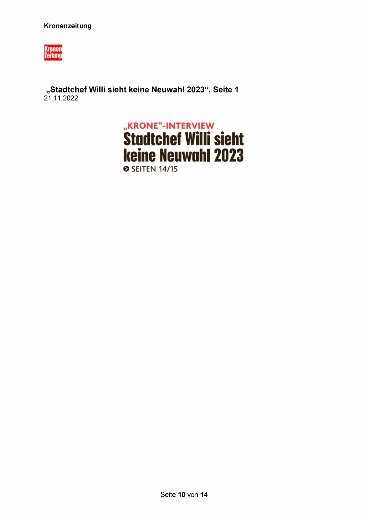 „Stadtchef Willi sieht keine Neuwahl 2023“, Seite 1