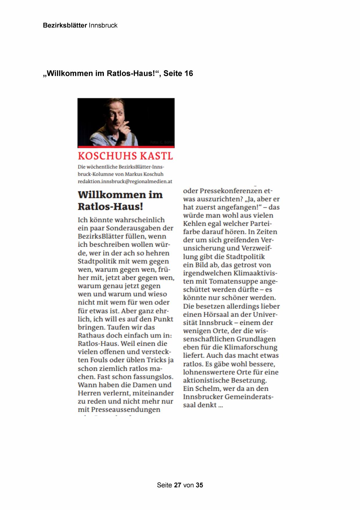 Die wöchentliche BezirksBlätter-Innsbruck-Kolumne von Markus Koschuh