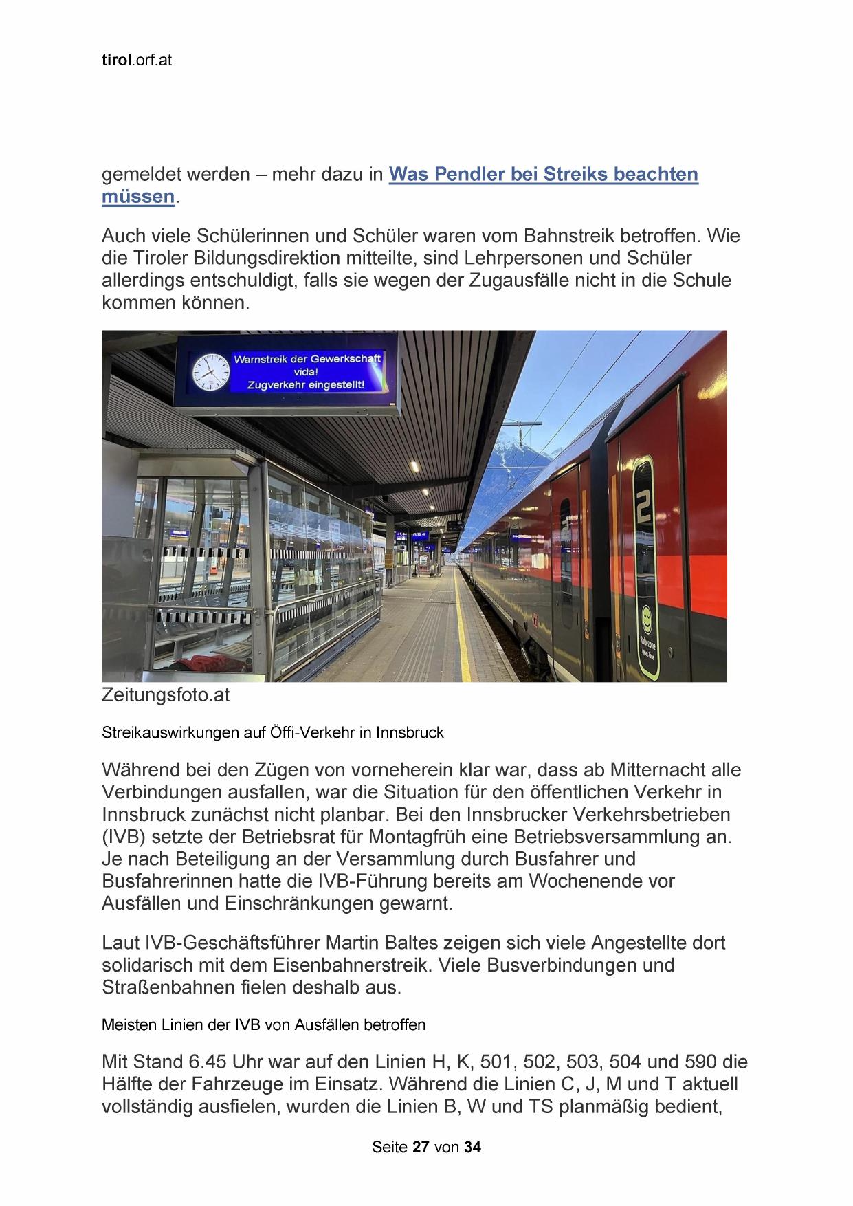 Streikauswirkungen auf Öffi-Verkehr in Innsbruck