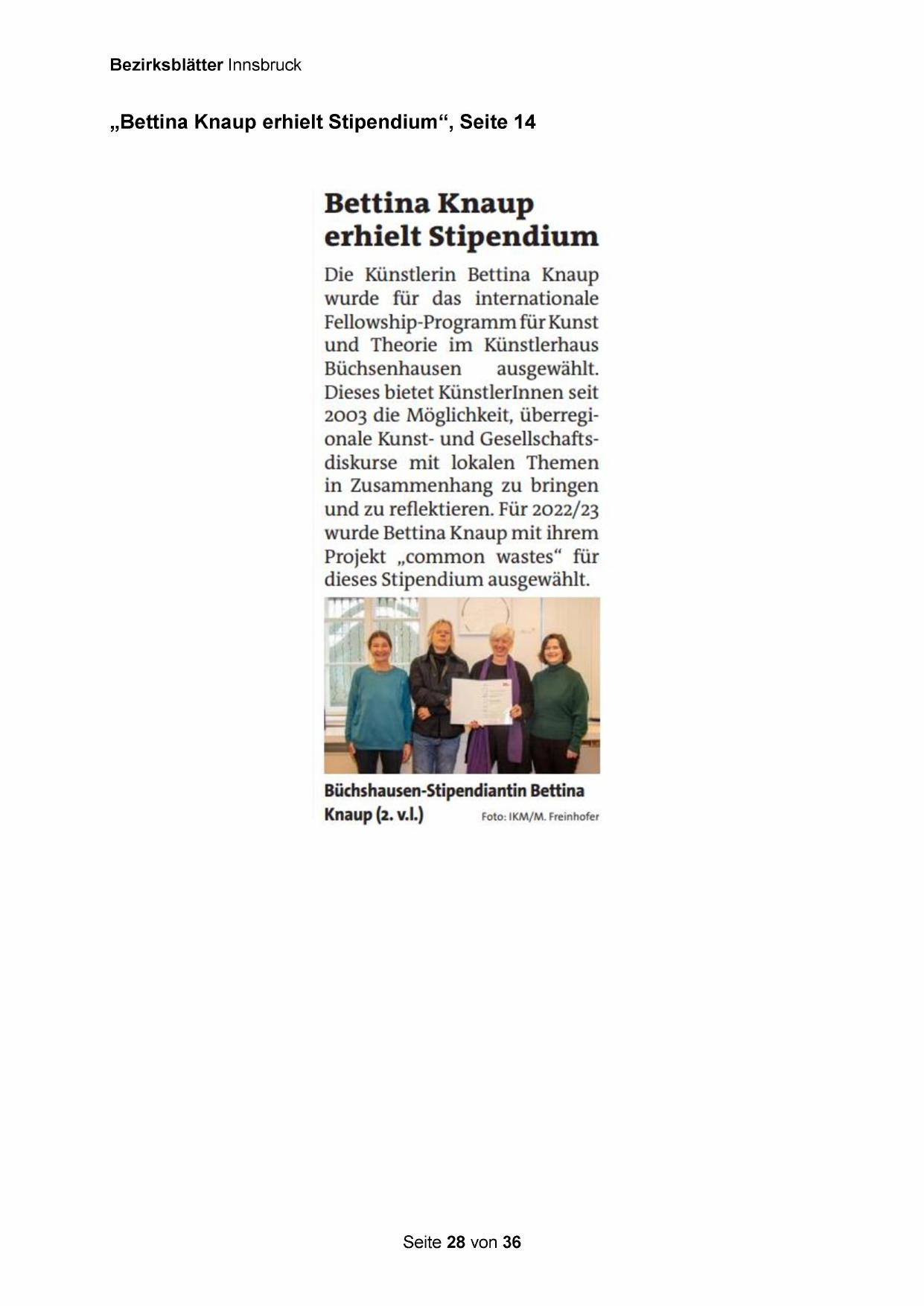 „Bettina Knaup erhielt Stipendium“, Seite 14